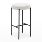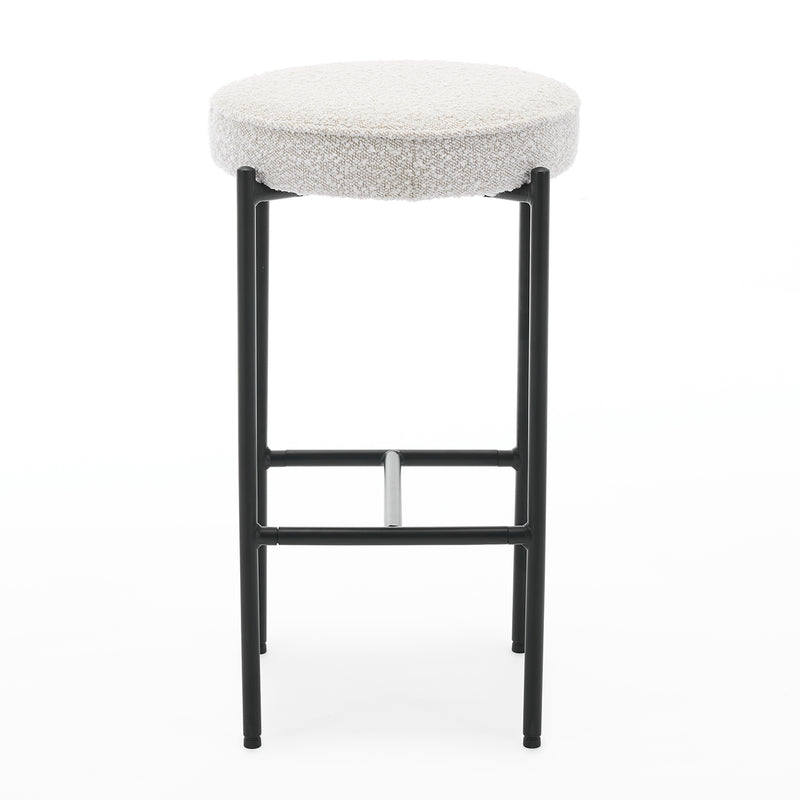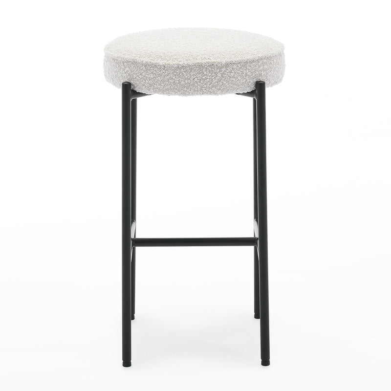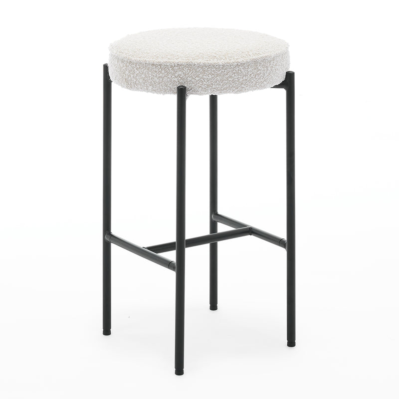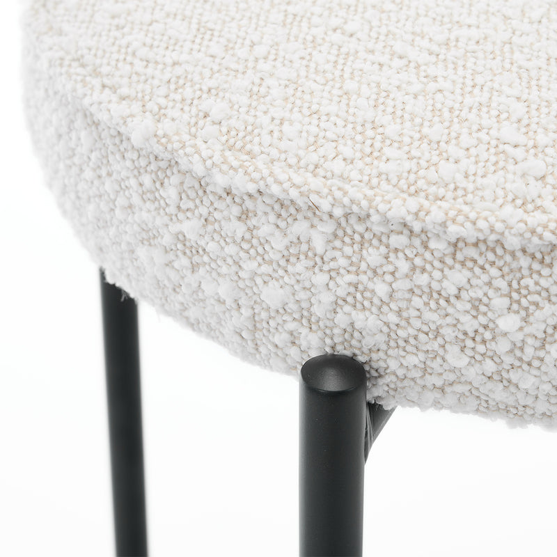 Boucle upholstery, gold toned legs, backless design.