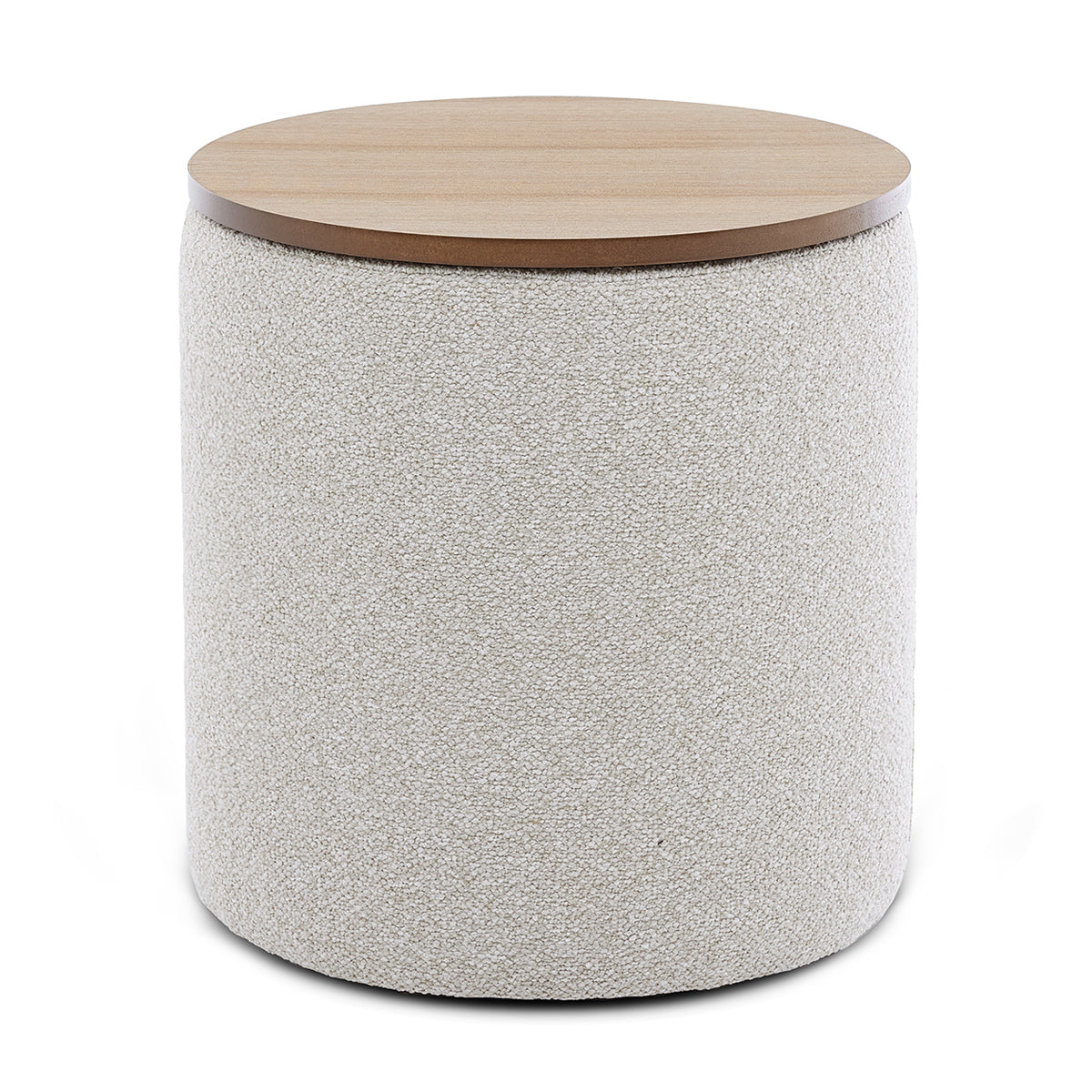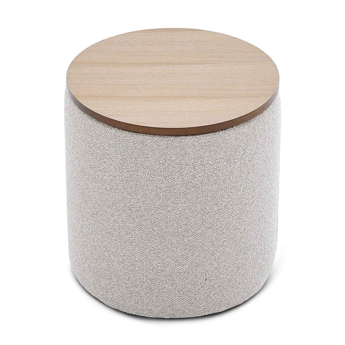 Covered in a soft textured fabric, the Zoe Timber Top Storage Ottoman is a versatile and stylish addition to any living space, bedroom or lounge room. The smooth wooden lid not only adds a touch of natural charm but also serves as a removable yet secure top, offering ample storage space within. Perfect for tucking away blankets, books, or toys, this functional piece doubles as a comfortable seat or a chic accent table.