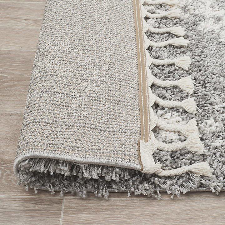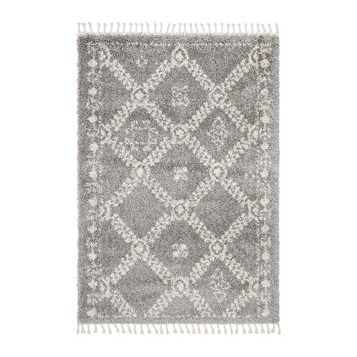 Polypropylene pile, power loomed, 40mm pile height, made in Turkey, tassels are 8cm.