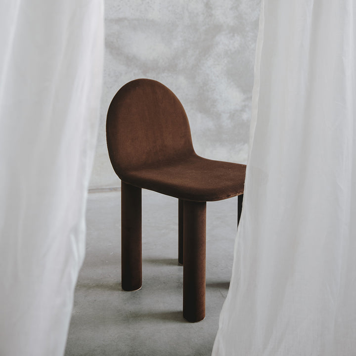 Designed by Sarah Ellison for ELLISON STUDIOS., linen-blend upholstery, moulded leg and seat construction, foam-padded seat and back, available in various other finishes.