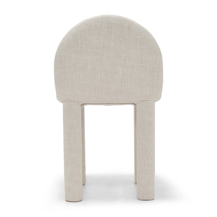 Designed by Sarah Ellison for ELLISON STUDIOS., linen-blend upholstery, moulded leg and seat construction, foam-padded seat and back, available in various other finishes.