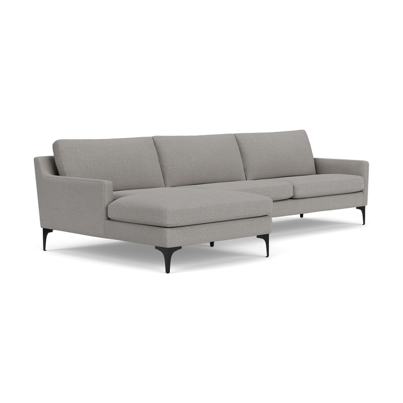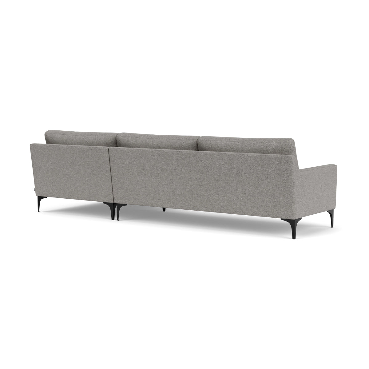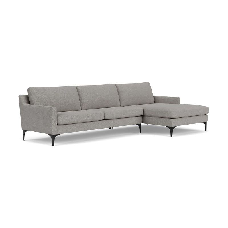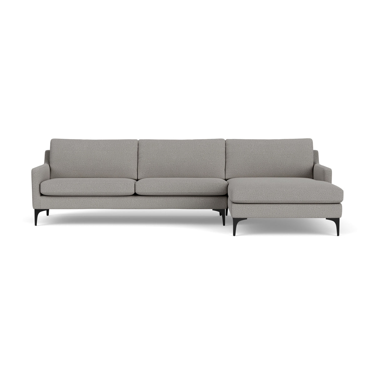 The Astha Fabric Right Chaise Sofa offers a perfect blend of comfort and modern elegance, featuring a sleek design with clean lines and upholstery. Its spacious seating area is complemented by plush, cushioned support, ideal for relaxation. It provides additional comfort, allowing you to stretch out and unwind. Crafted with sturdy legs, this lounge chair ensures durability while maintaining a light, airy feel.