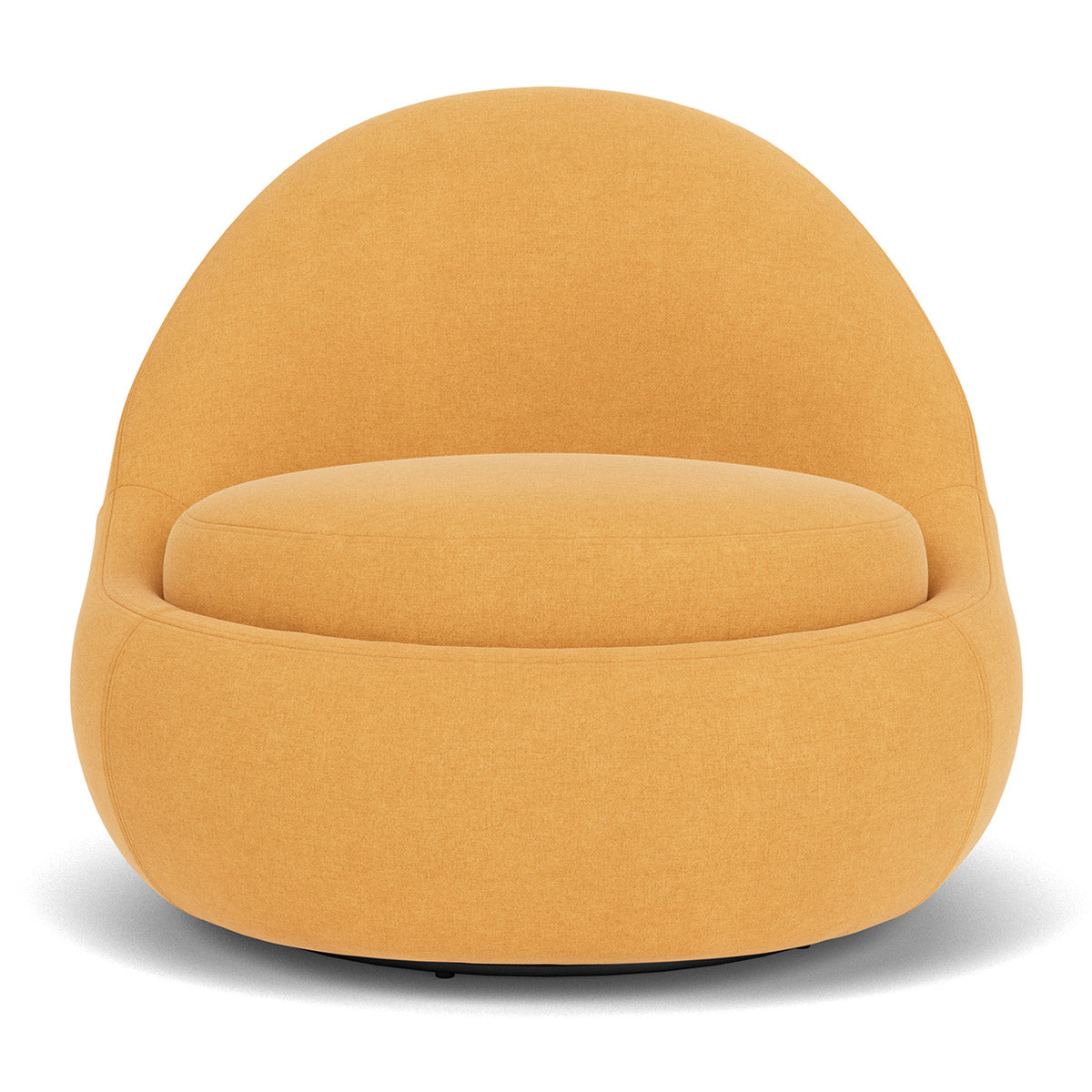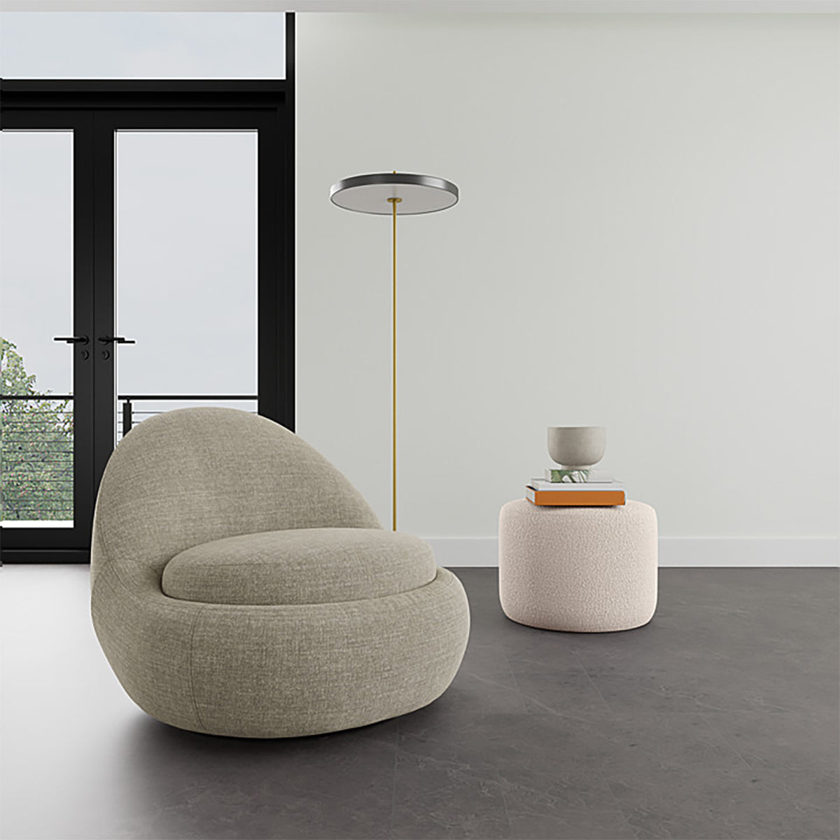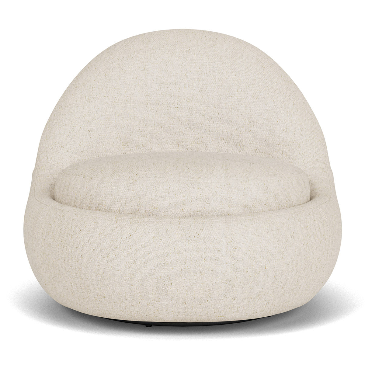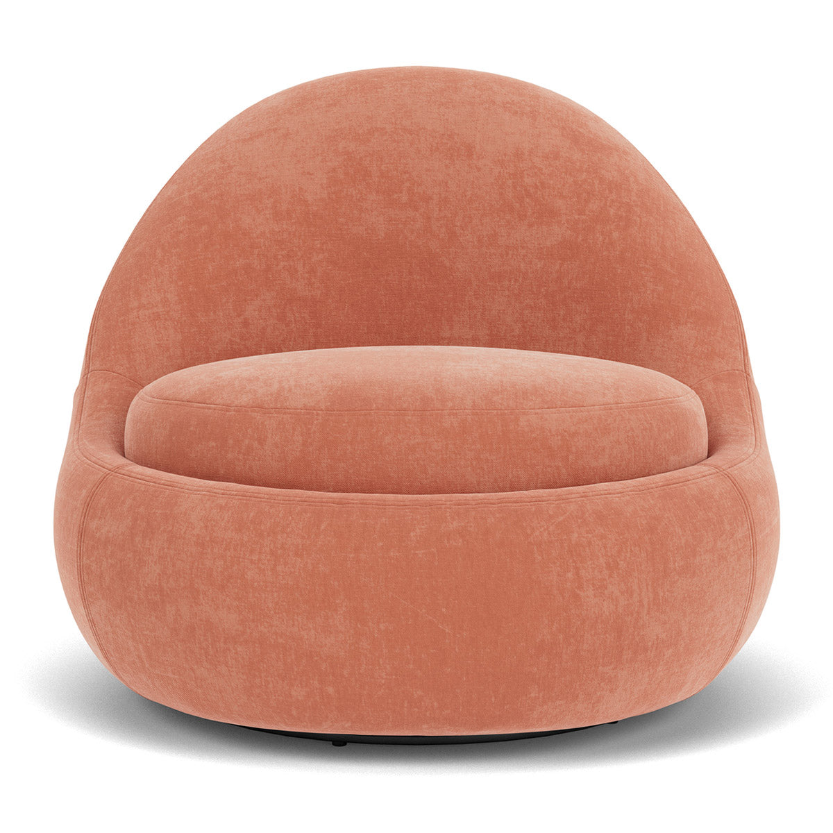 The Babette Fabric Swivel Armchair offers an understated contemporary style, with a plump, soft cushioned seat and supportive backrest. The chair features a simple curved silhouette with a discreet swivel foot for added functionality. It is upholstered in a soft fabric woven from a polyester blend, which is incredibly durable, fade-resistant and easy to maintain. This chair will add dimension and elegance into any living room interiors with its minimal curved form and chic aesthetic.