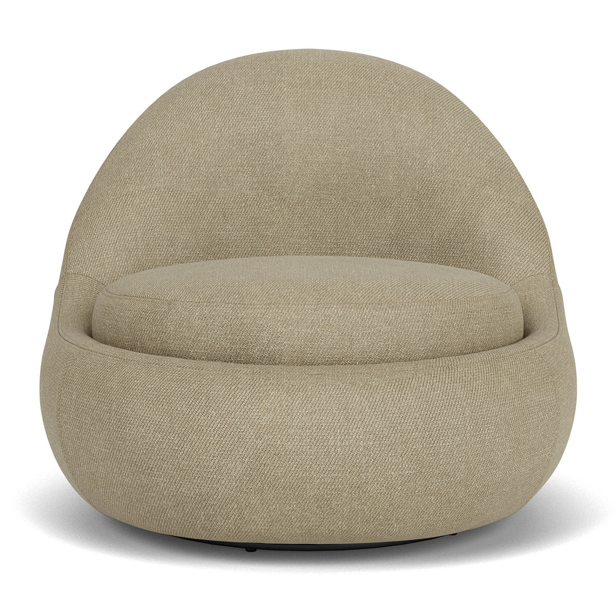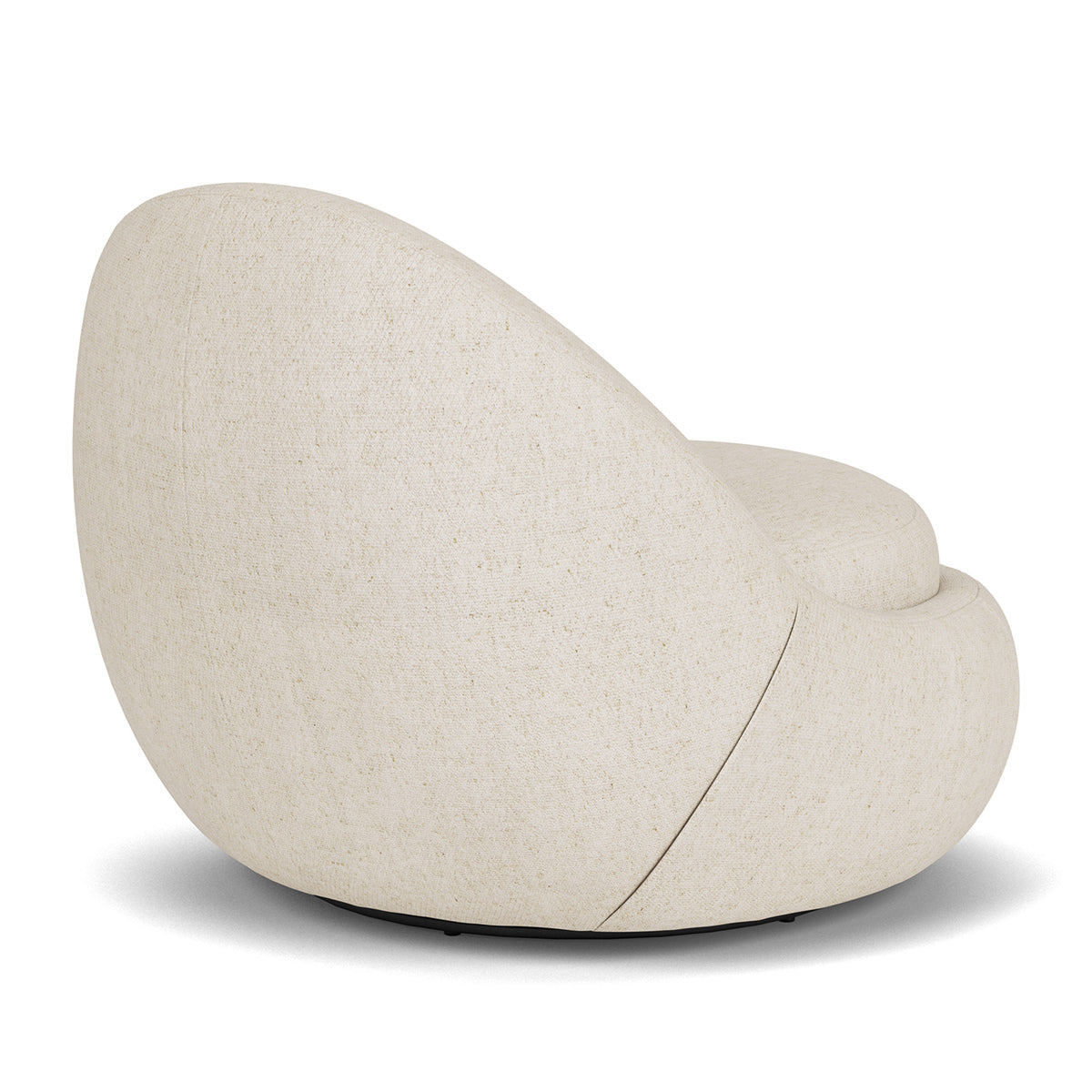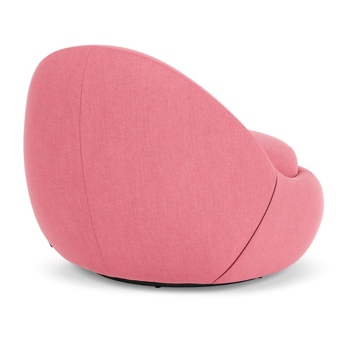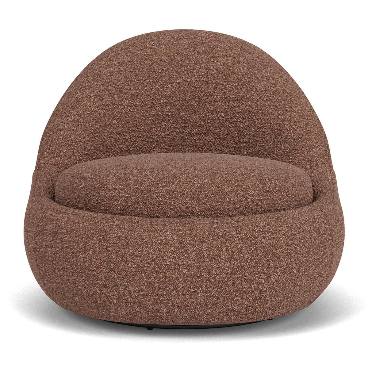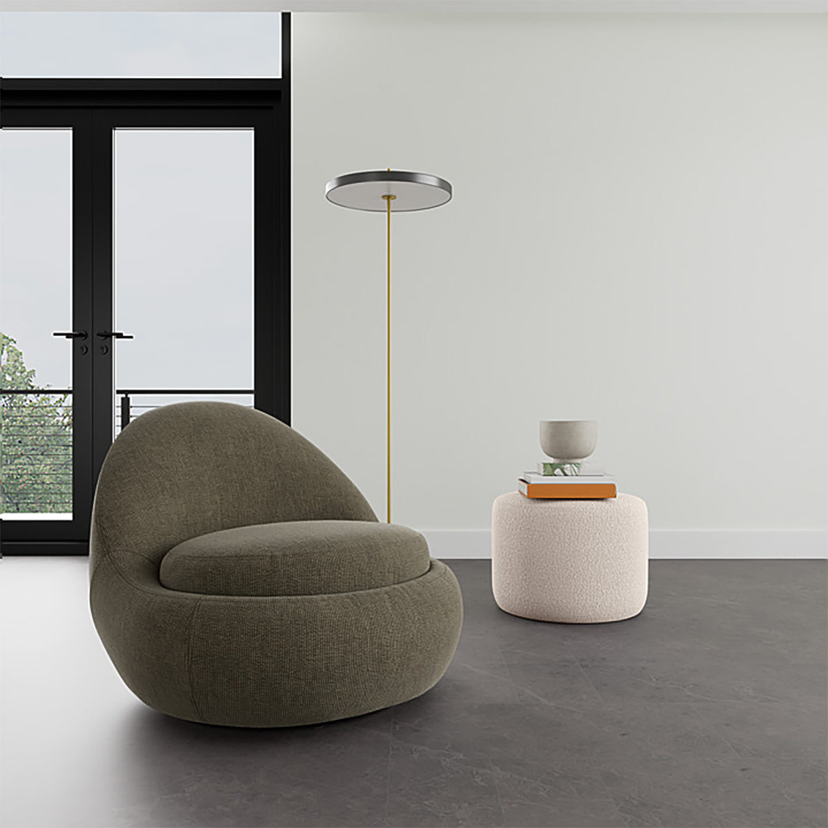 The Babette Fabric Swivel Armchair offers an understated contemporary style, with a plump, soft cushioned seat and supportive backrest. The chair features a simple curved silhouette with a discreet swivel foot for added functionality. It is upholstered in a soft fabric woven from a polyester blend, which is incredibly durable, fade-resistant and easy to maintain. This chair will add dimension and elegance into any living room interiors with its minimal curved form and chic aesthetic.