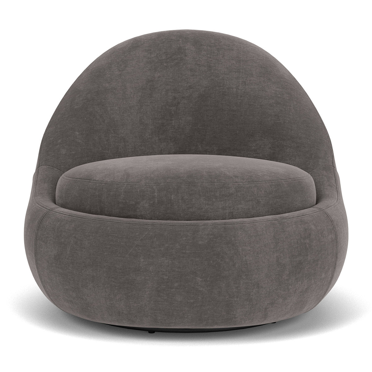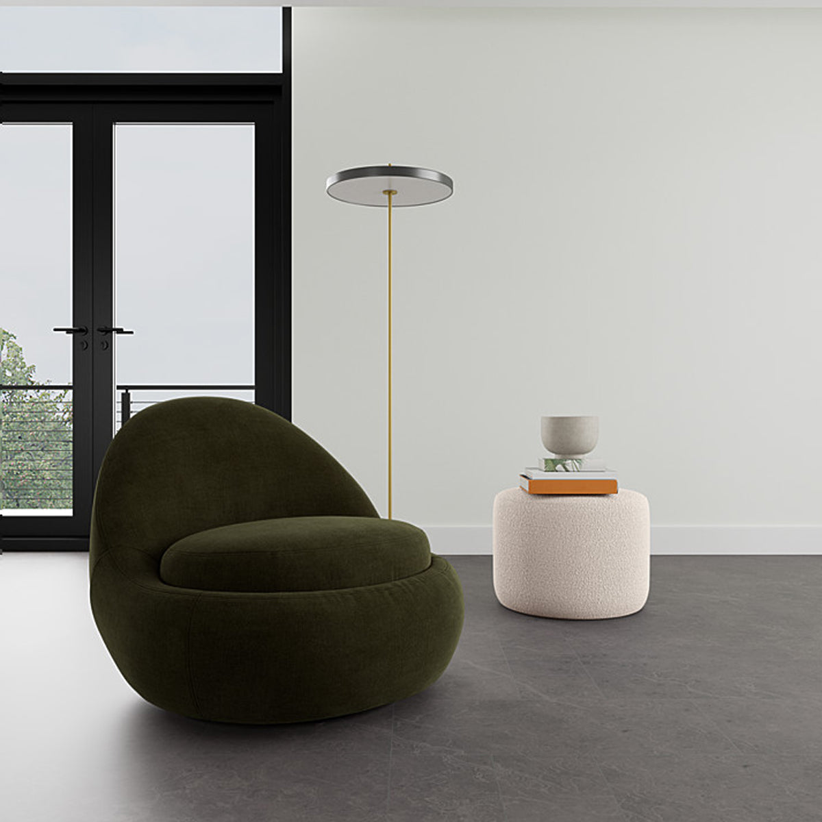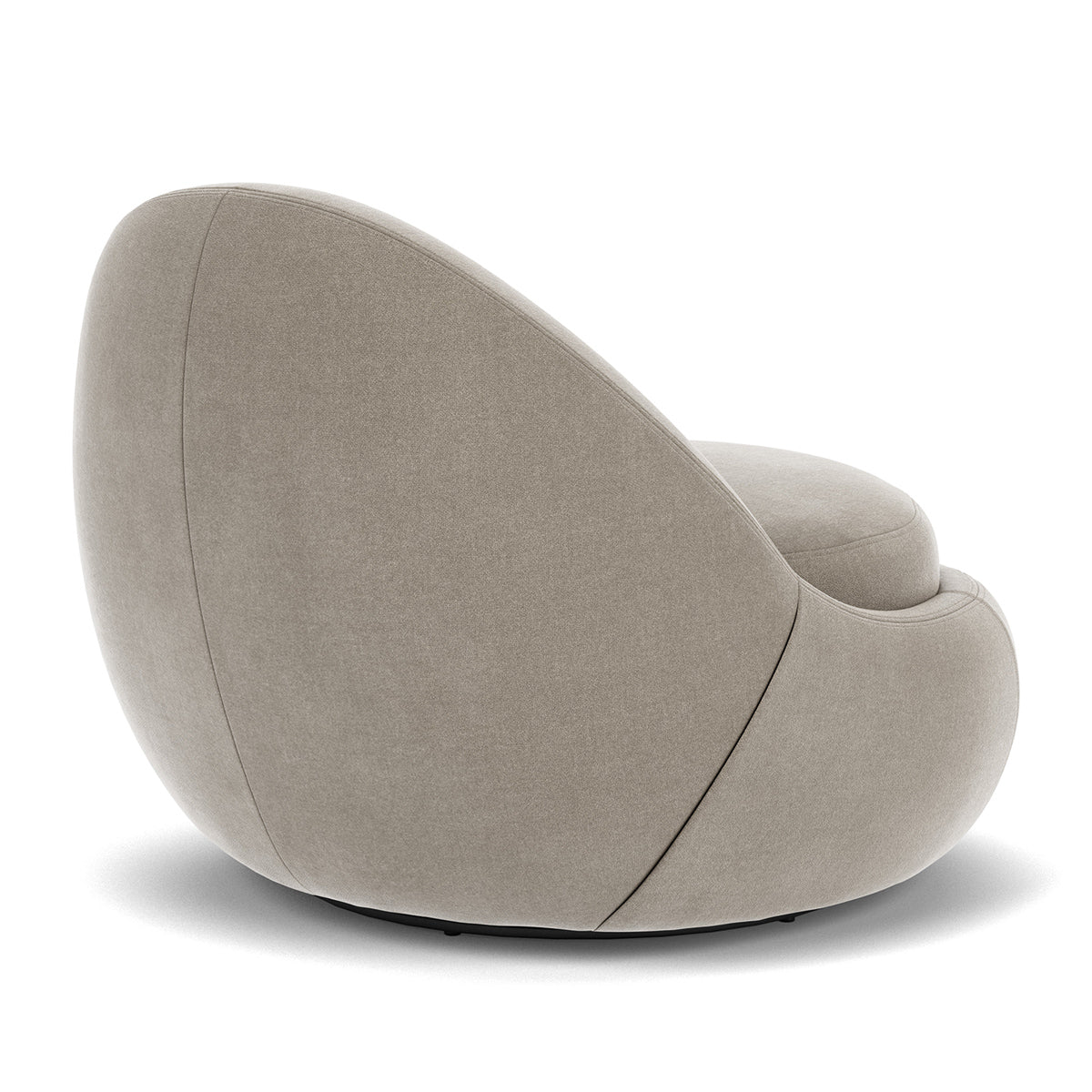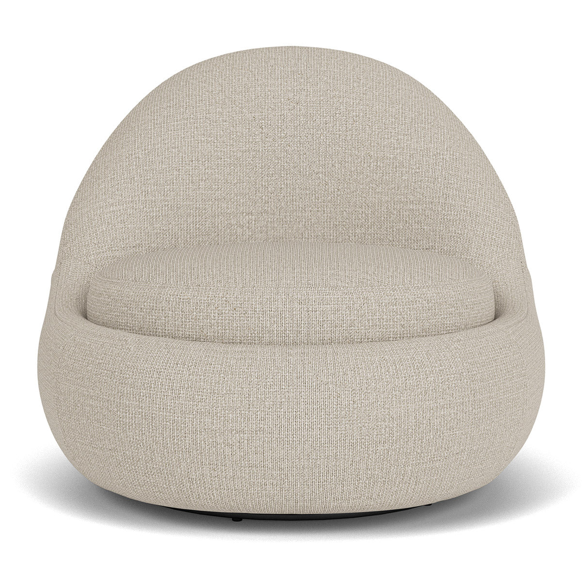 The Babette Fabric Swivel Armchair offers an understated contemporary style, with a plump, soft cushioned seat and supportive backrest. The chair features a simple curved silhouette with a discreet swivel foot for added functionality. It is upholstered in a soft fabric woven from a polyester blend, which is incredibly durable, fade-resistant and easy to maintain. This chair will add dimension and elegance into any living room interiors with its minimal curved form and chic aesthetic.