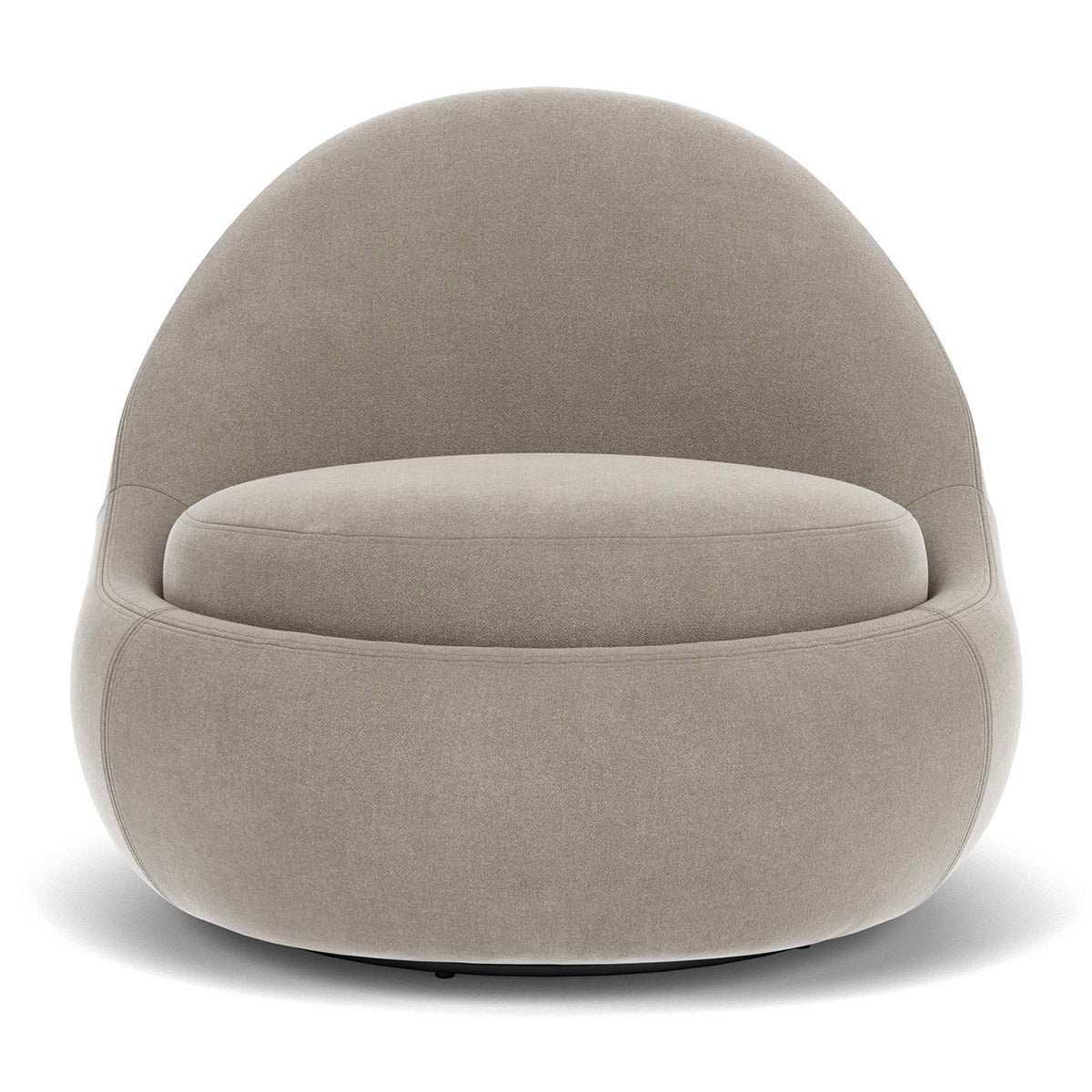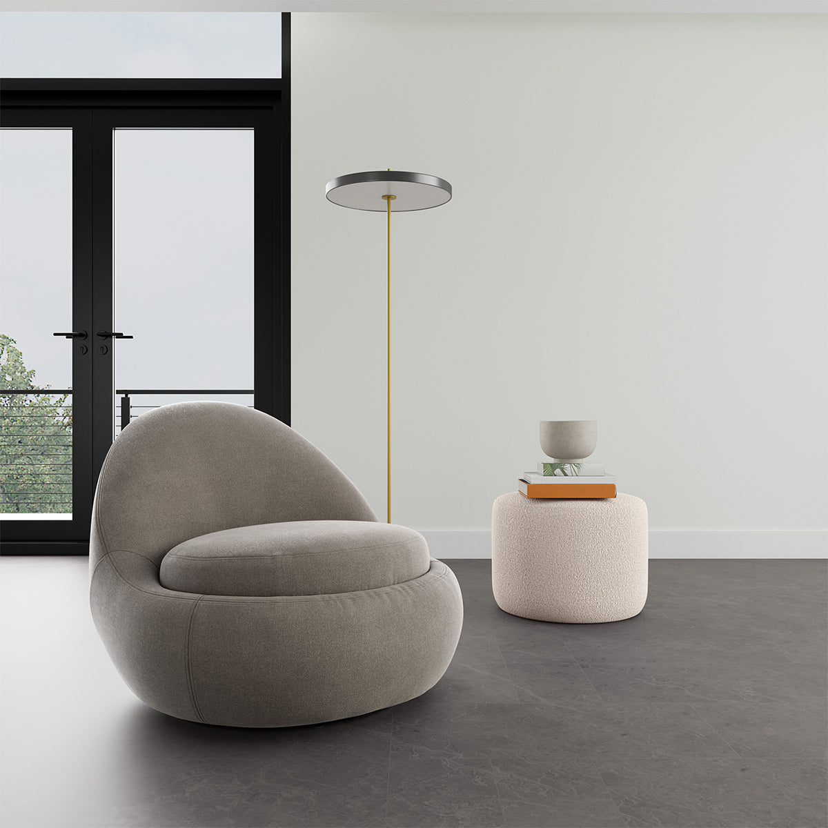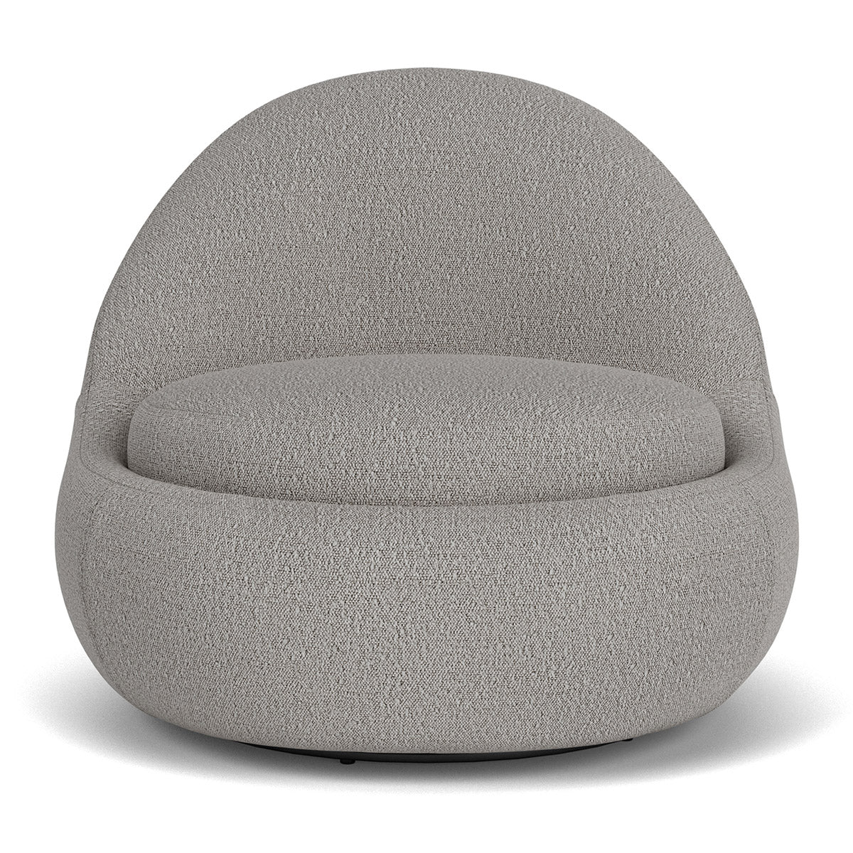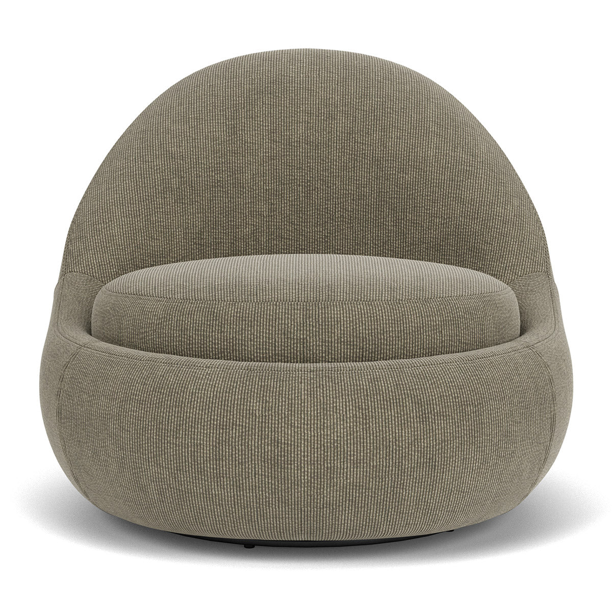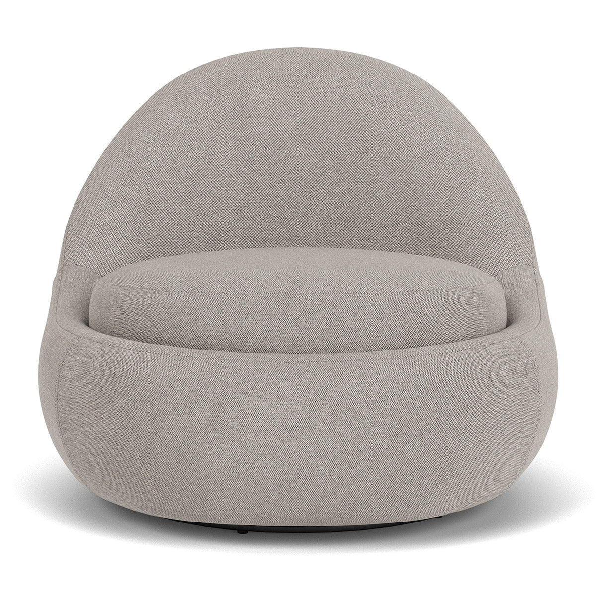 The Babette Fabric Swivel Armchair offers an understated contemporary style, with a plump, soft cushioned seat and supportive backrest. The chair features a simple curved silhouette with a discreet swivel foot for added functionality. It is upholstered in a soft fabric woven from a polyester blend, which is incredibly durable, fade-resistant and easy to maintain. This chair will add dimension and elegance into any living room interiors with its minimal curved form and chic aesthetic.