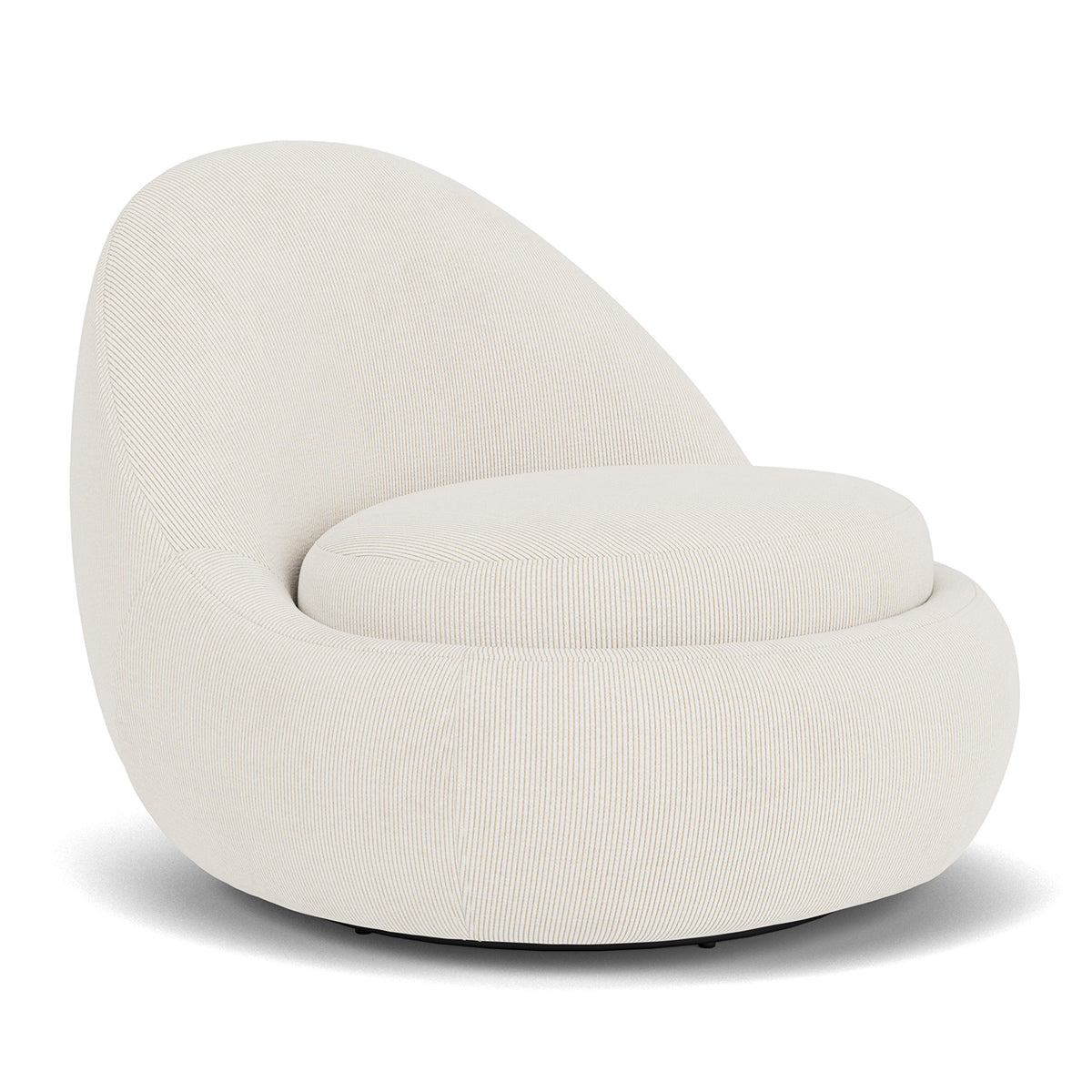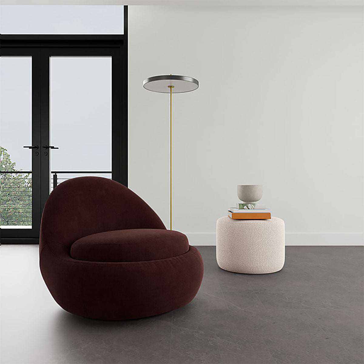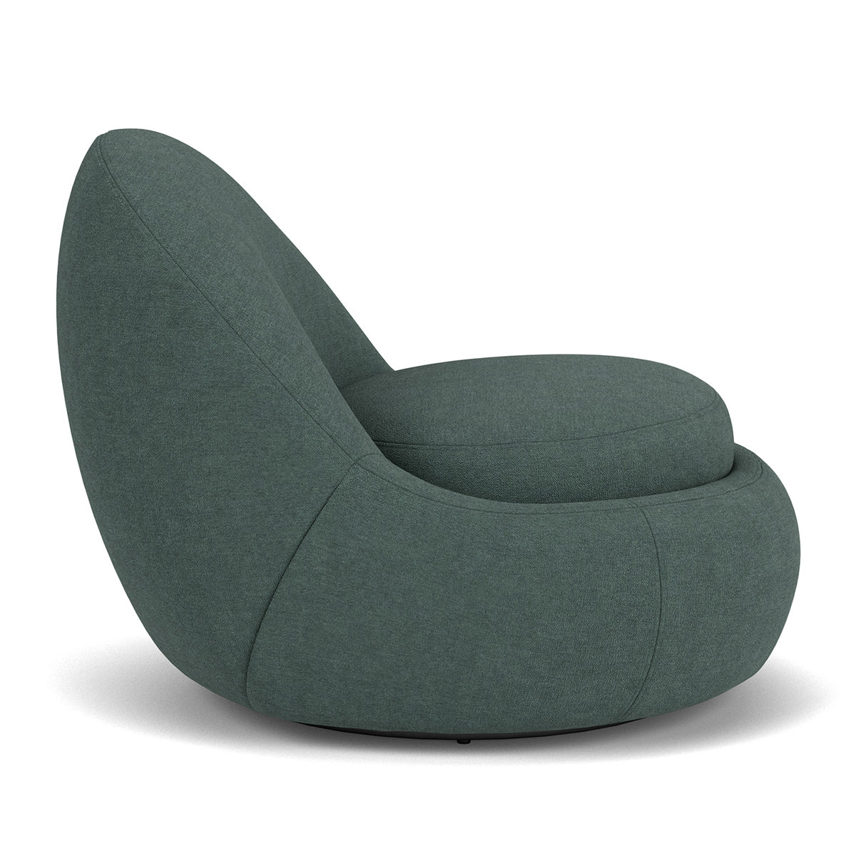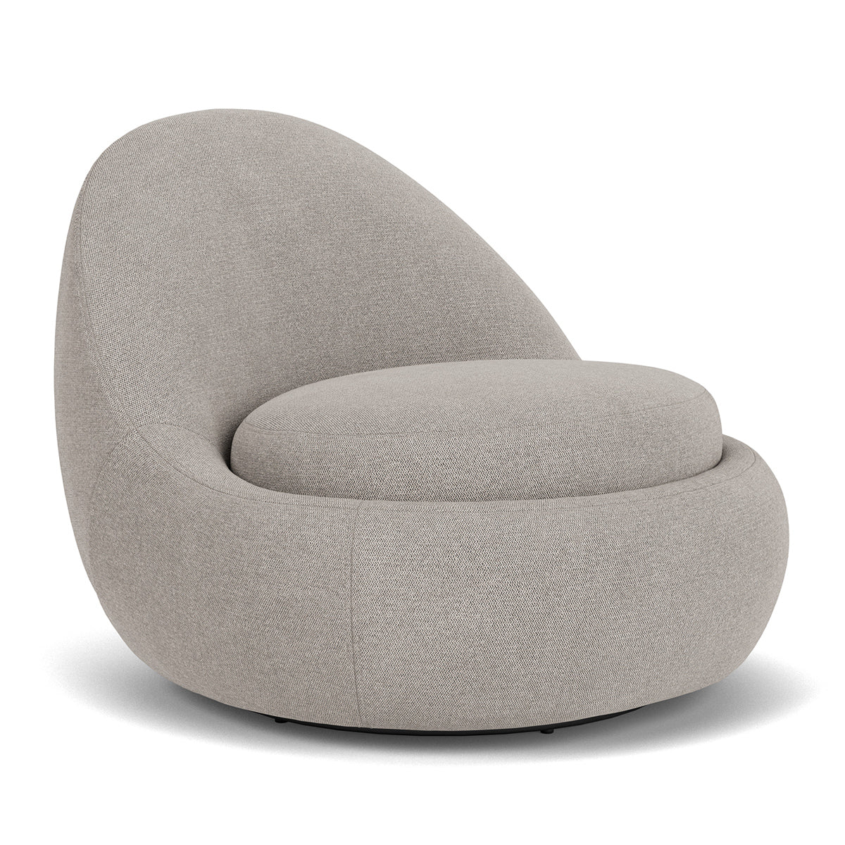 The Babette Fabric Swivel Armchair offers an understated contemporary style, with a plump, soft cushioned seat and supportive backrest. The chair features a simple curved silhouette with a discreet swivel foot for added functionality. It is upholstered in a soft fabric woven from a polyester blend, which is incredibly durable, fade-resistant and easy to maintain. This chair will add dimension and elegance into any living room interiors with its minimal curved form and chic aesthetic.