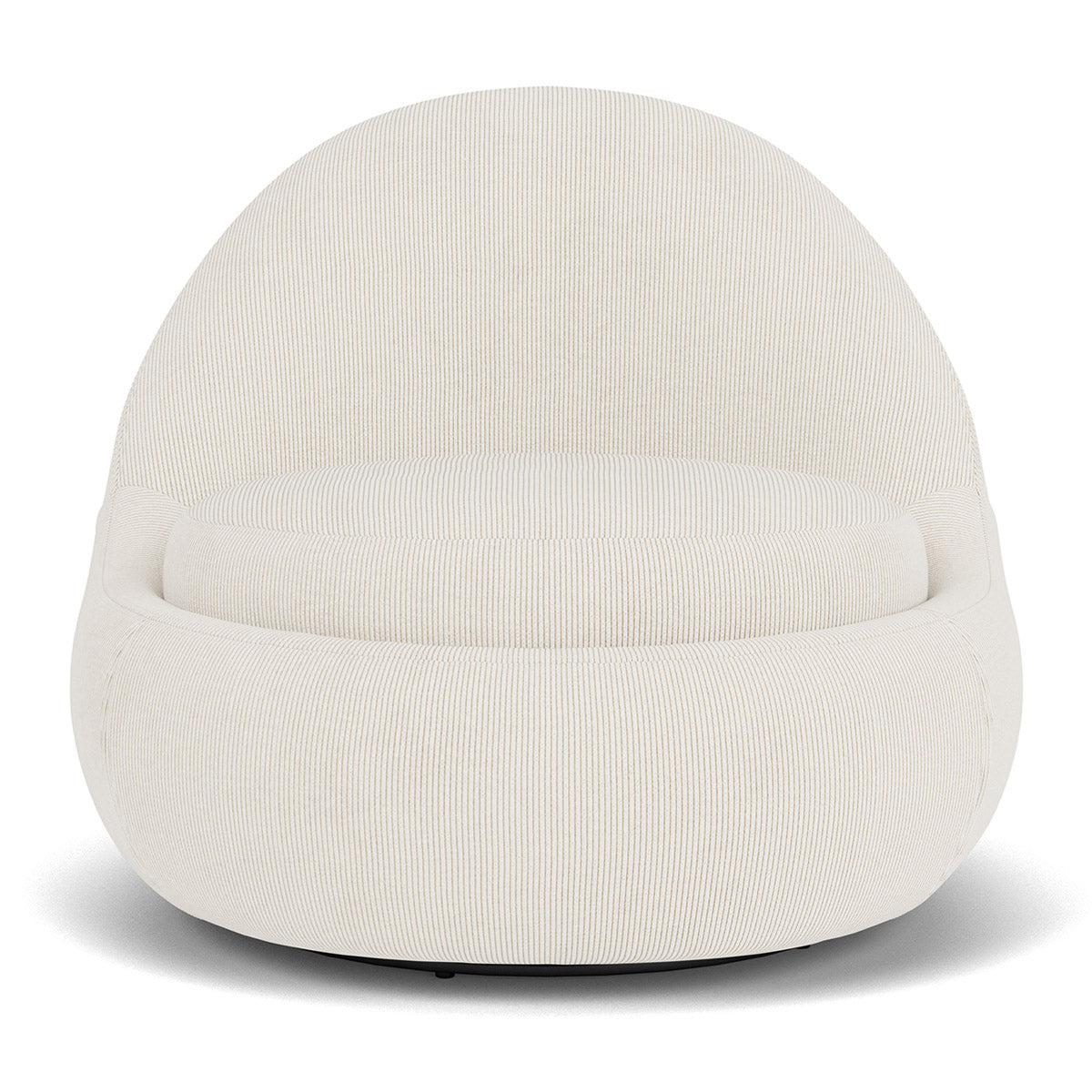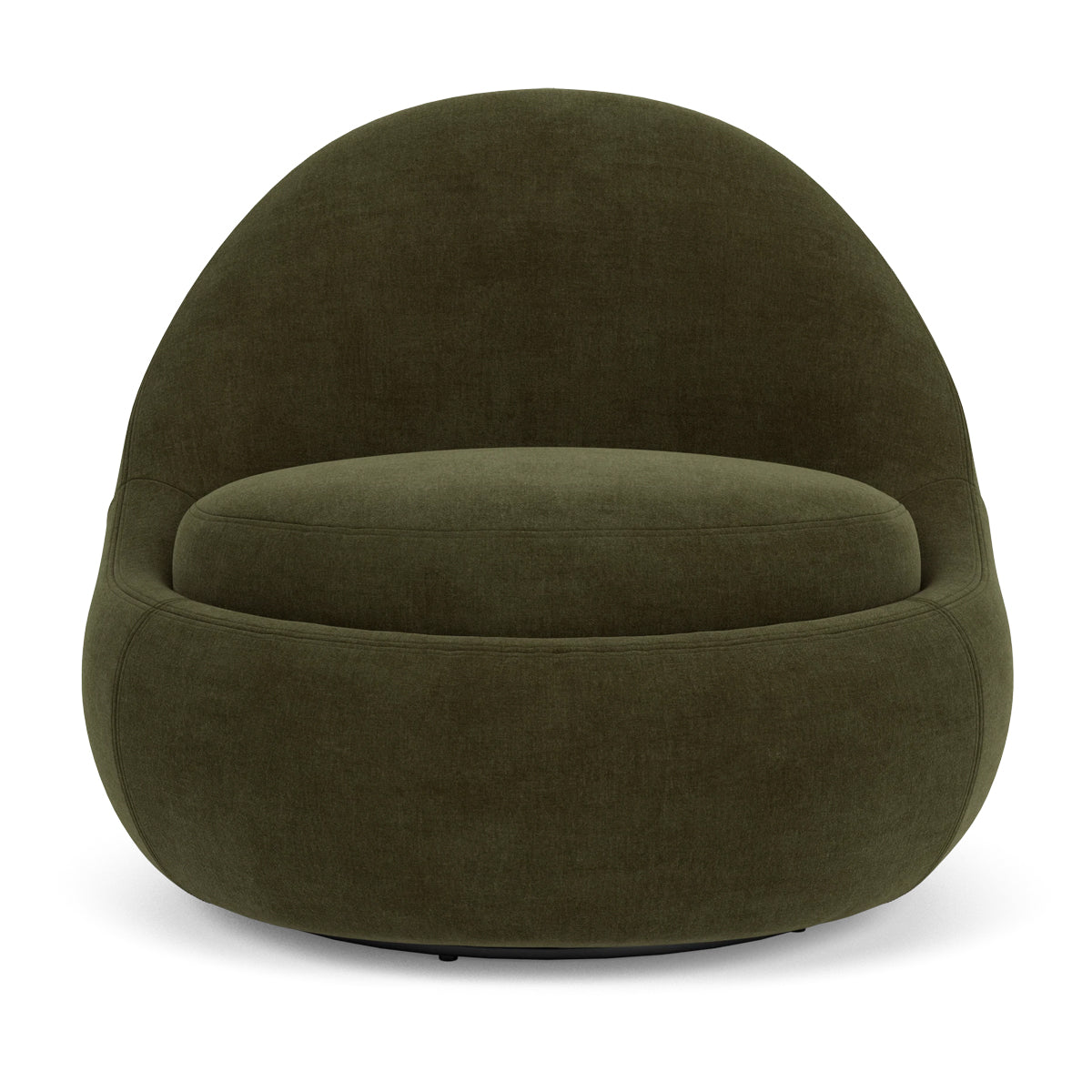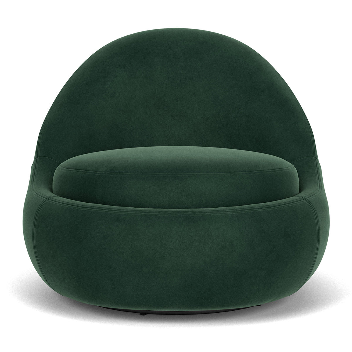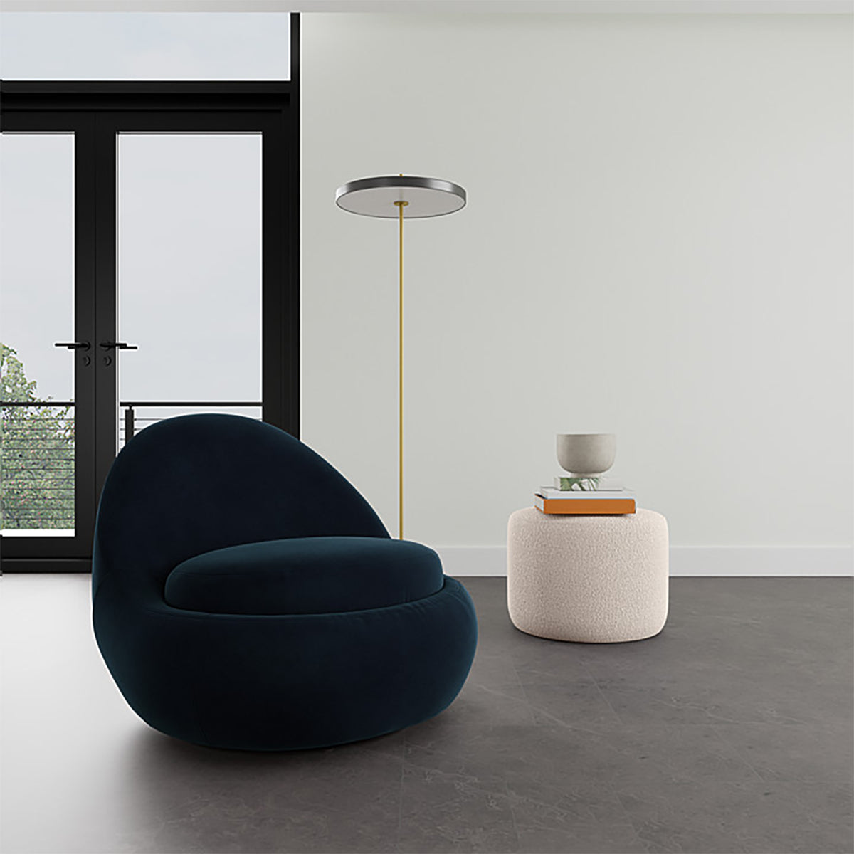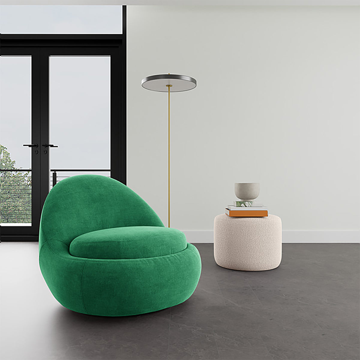 The Babette Fabric Swivel Armchair offers an understated contemporary style, with a plump, soft cushioned seat and supportive backrest. The chair features a simple curved silhouette with a discreet swivel foot for added functionality. It is upholstered in a soft fabric woven from a polyester blend, which is incredibly durable, fade-resistant and easy to maintain. This chair will add dimension and elegance into any living room interiors with its minimal curved form and chic aesthetic.