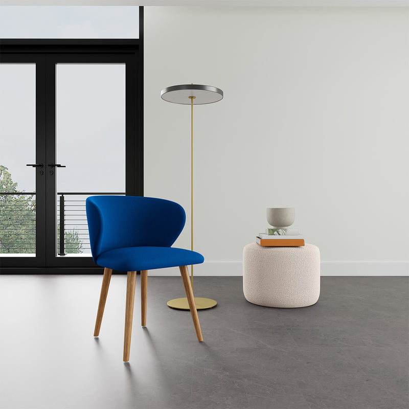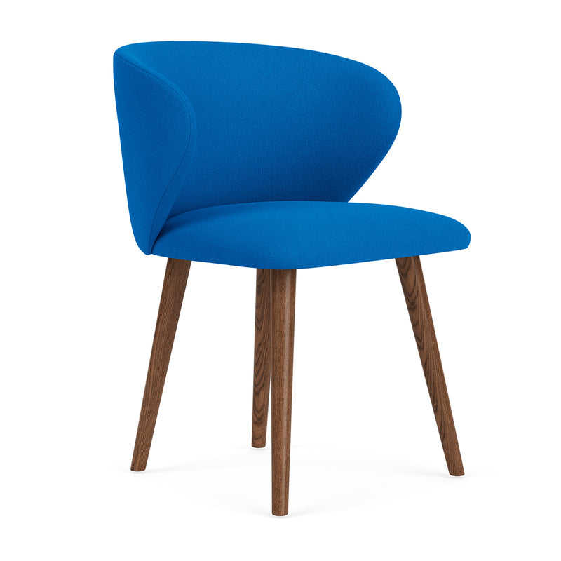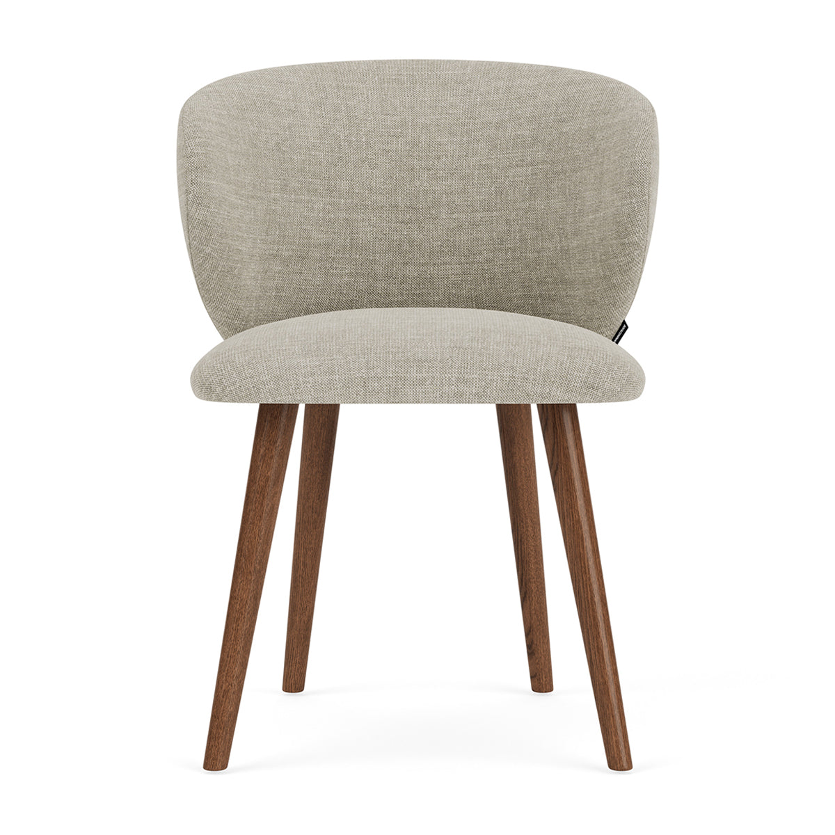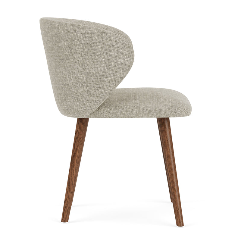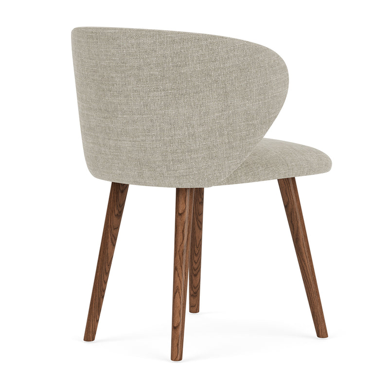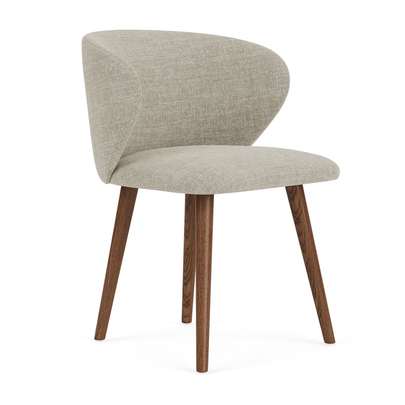 The Ellie Fabric Dining Chair showcases a timeless and sculptural design that will effortlessly enhance the look of your dining setting. The soft padding and the slightly curved backrest ensure ample support so that you can sit comfortably for a long time. Ellie is upholstered with a soft fabric that will add an elegant point of interest to any dining space. The slender legs are available in three stylish finishes including black metal, oak wood, or walnut timber.