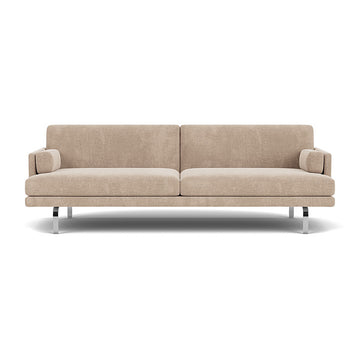 Ernest is a deep floating fabric sofa but with a beautiful and simple architectural style. The design is full of contrast with the soft, deep cushions and the curved legs in chrome, which together make Ernest a sofa that really stands out. In addition, the entire cover can be removed by Ernest - either to send the fabric to be cleaned or if you want to update the sofa with a new cover in a new colour in a different fabric. Here, Ernest is upholstered with a woven polyester quality in a a range of colours.