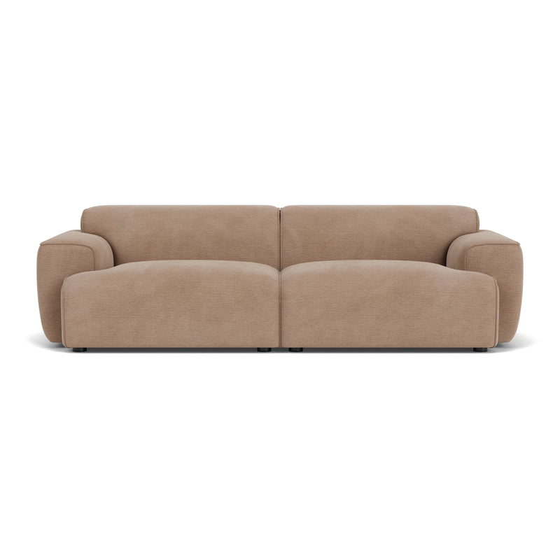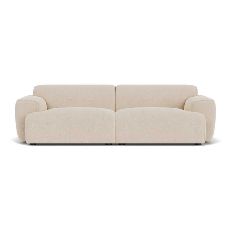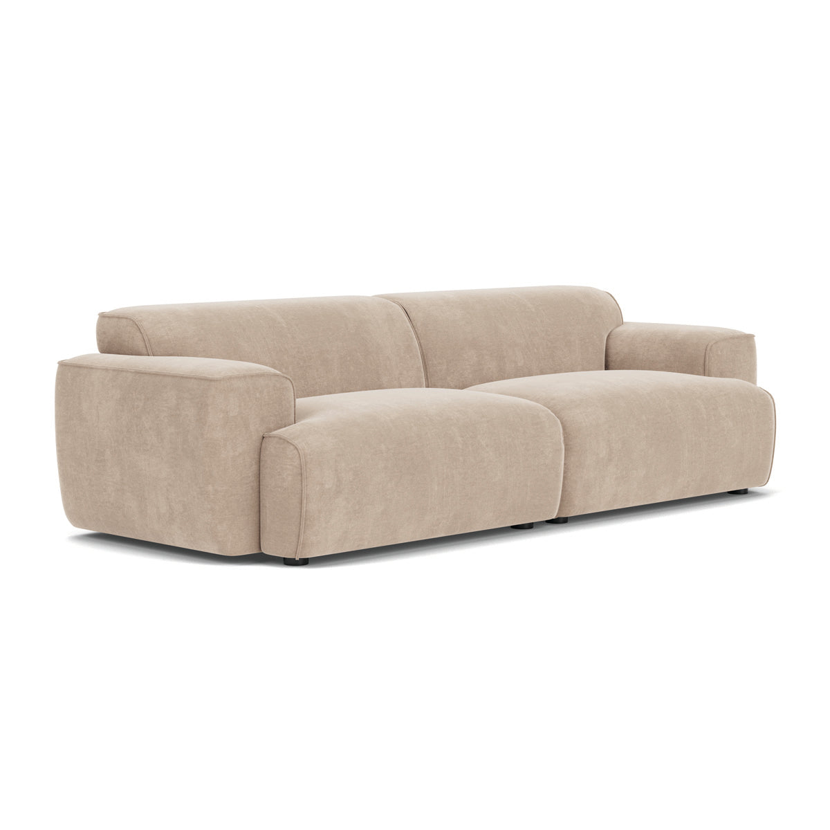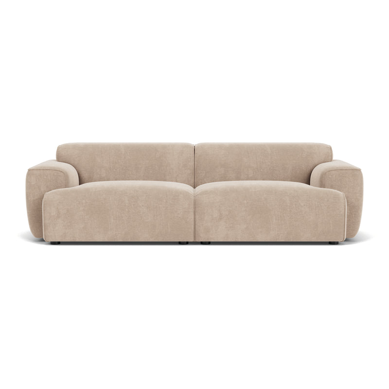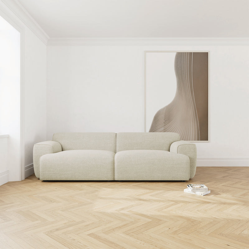The Greta Sofa is a spacious 3-seater with soft, sculptural curves that balance beauty and practicality. Its deep seat, low back, and plush armrests create a modern silhouette designed for laid-back lounging. Covered in a chic fabric upholstery, Greta embodies a focus on all things comfort and relaxed living.