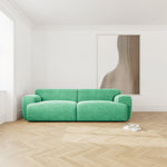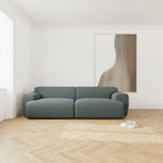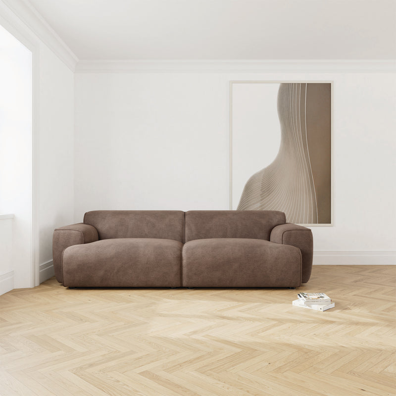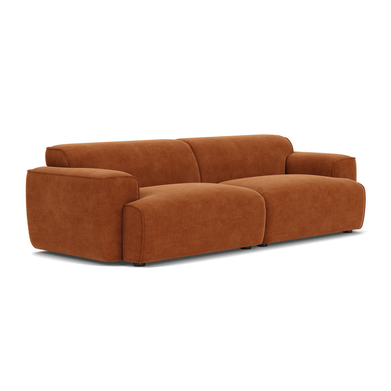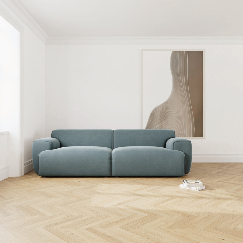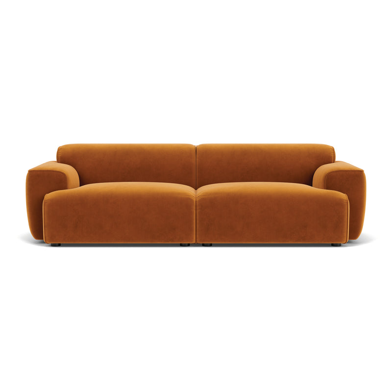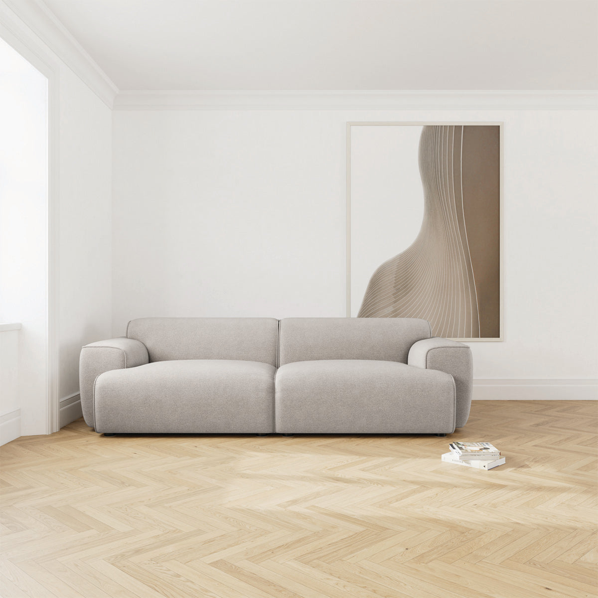 The Greta Sofa is a spacious 3-seater with soft, sculptural curves that balance beauty and practicality. Its deep seat, low back, and plush armrests create a modern silhouette designed for laid-back lounging. Covered in a chic fabric upholstery, Greta embodies a focus on all things comfort and relaxed living.