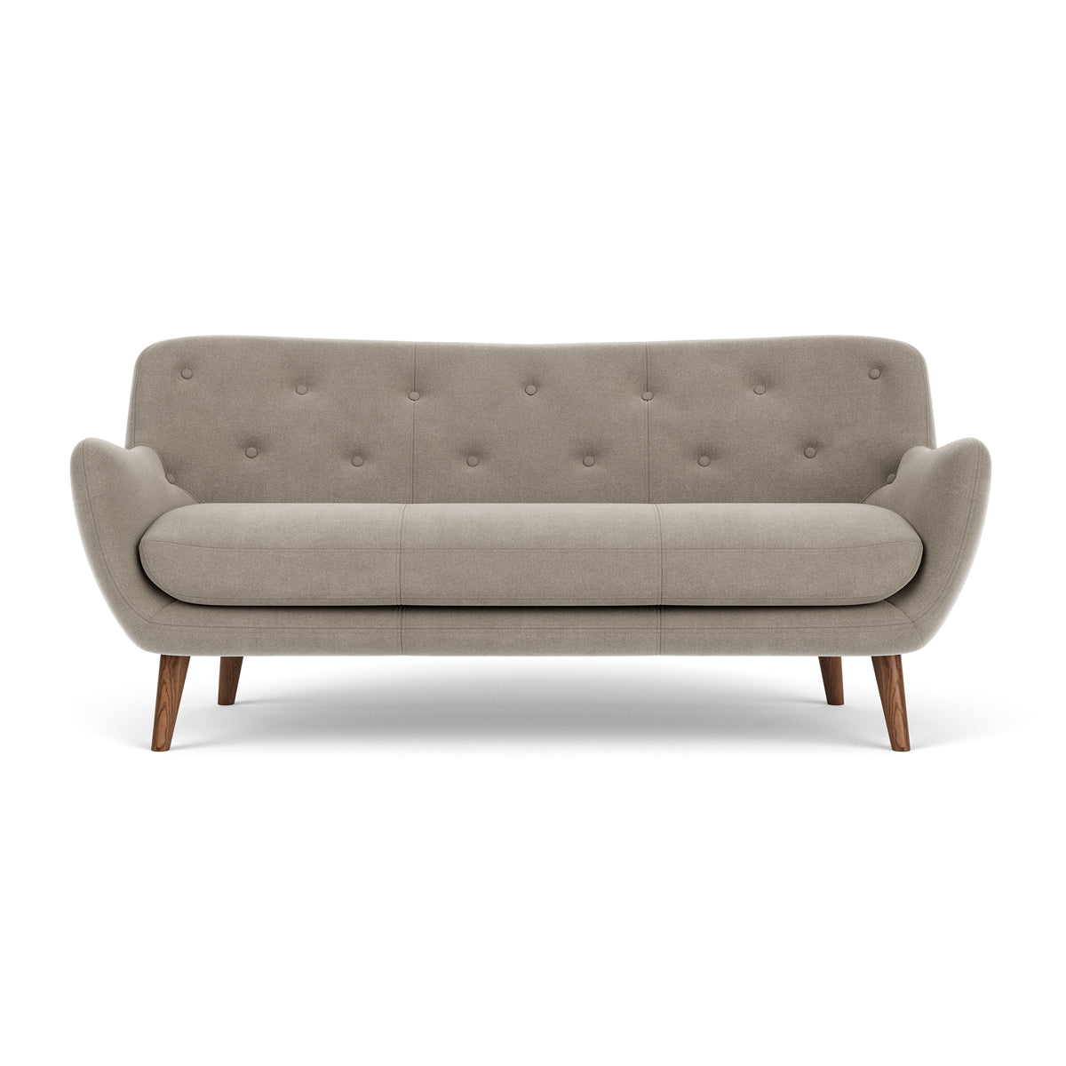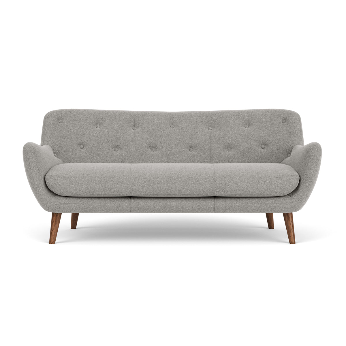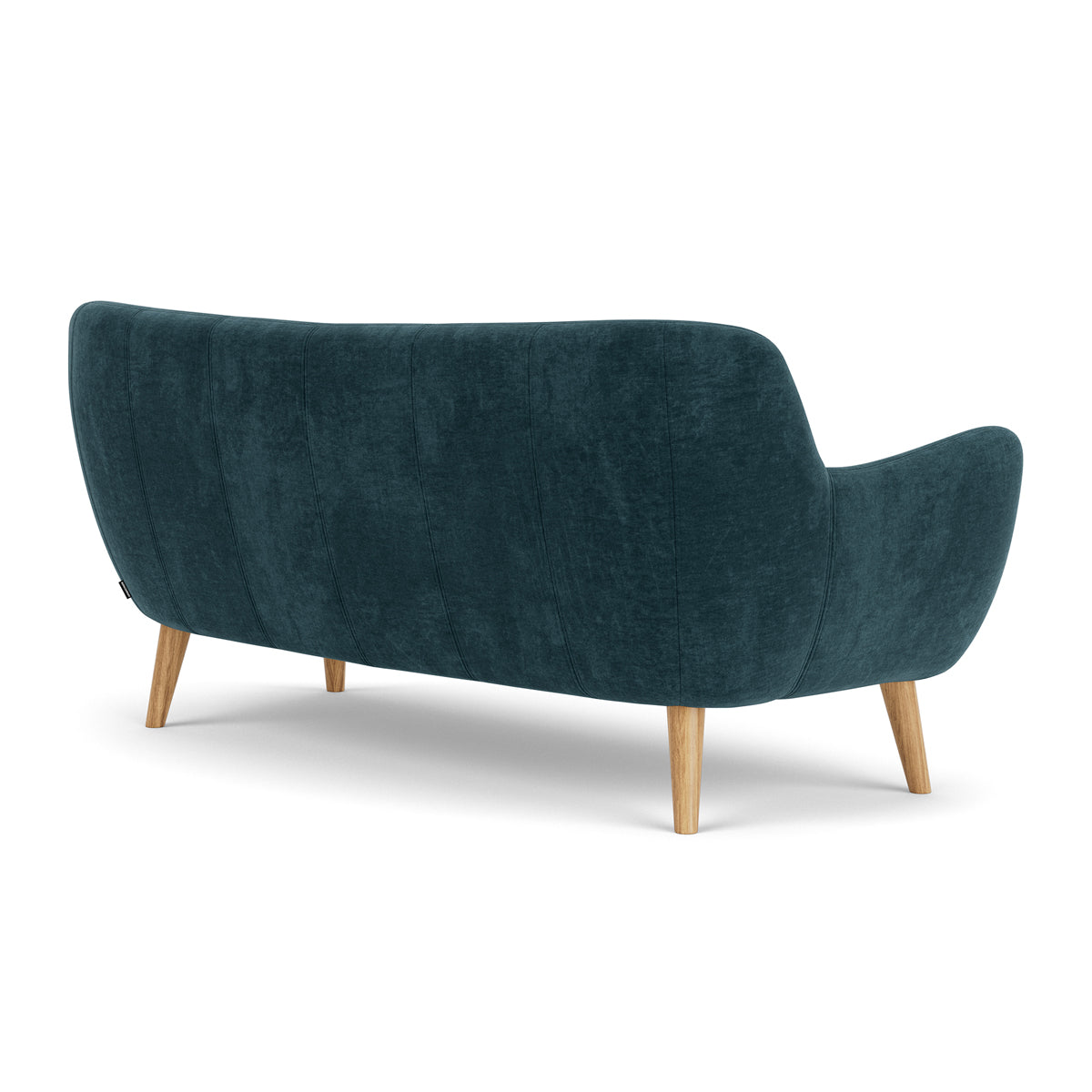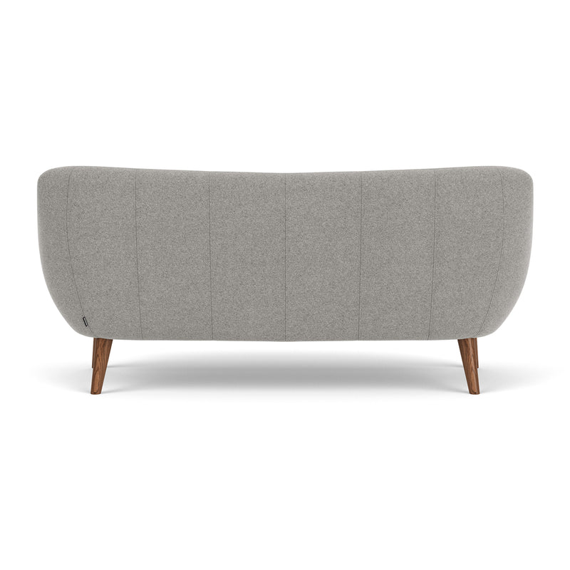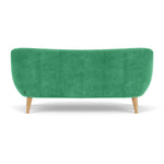 3 seater, fabric upholstery, wooden legs available in oak or walnut, curved shape, various colourways available, various finishes available.
