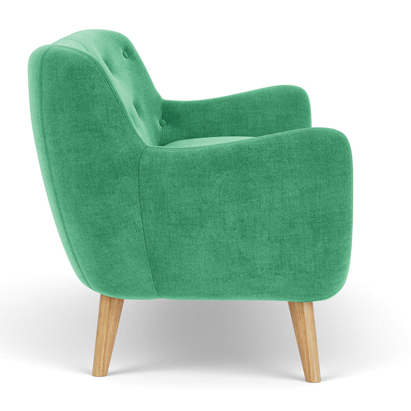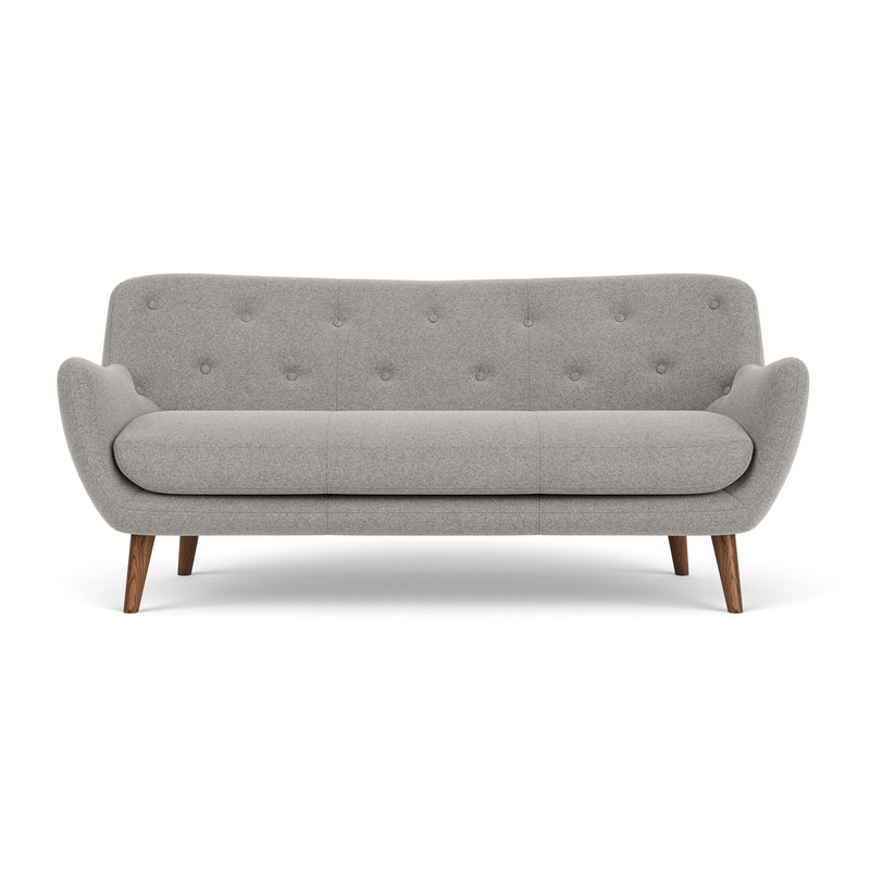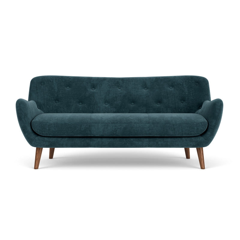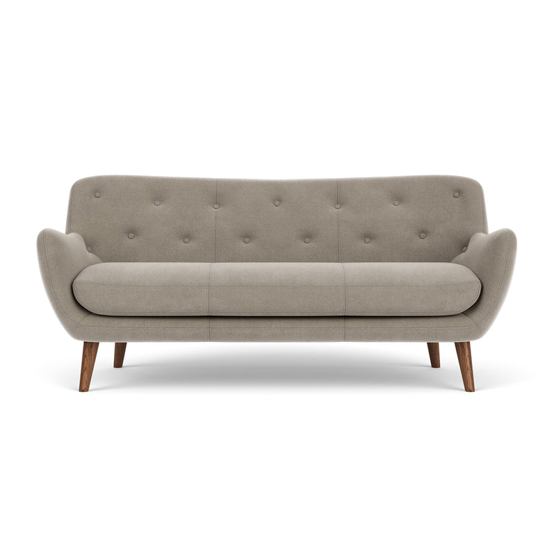 The Herman Fabric 3-Seater Sofa is a retro-inspired sofa with a soft and round design language with considered details. Taking inspiration from the 1950s, this sofa combines beautiful elements, such as characteristic buttons in the backrest, and sumptuous curves. Its legs feature a tapered and are available in two natural wood finishes of oak and walnut. The fabric upholstery will create a lovely focal point of textural interest, whilst providing a cosy place to curl up at the end of the day.