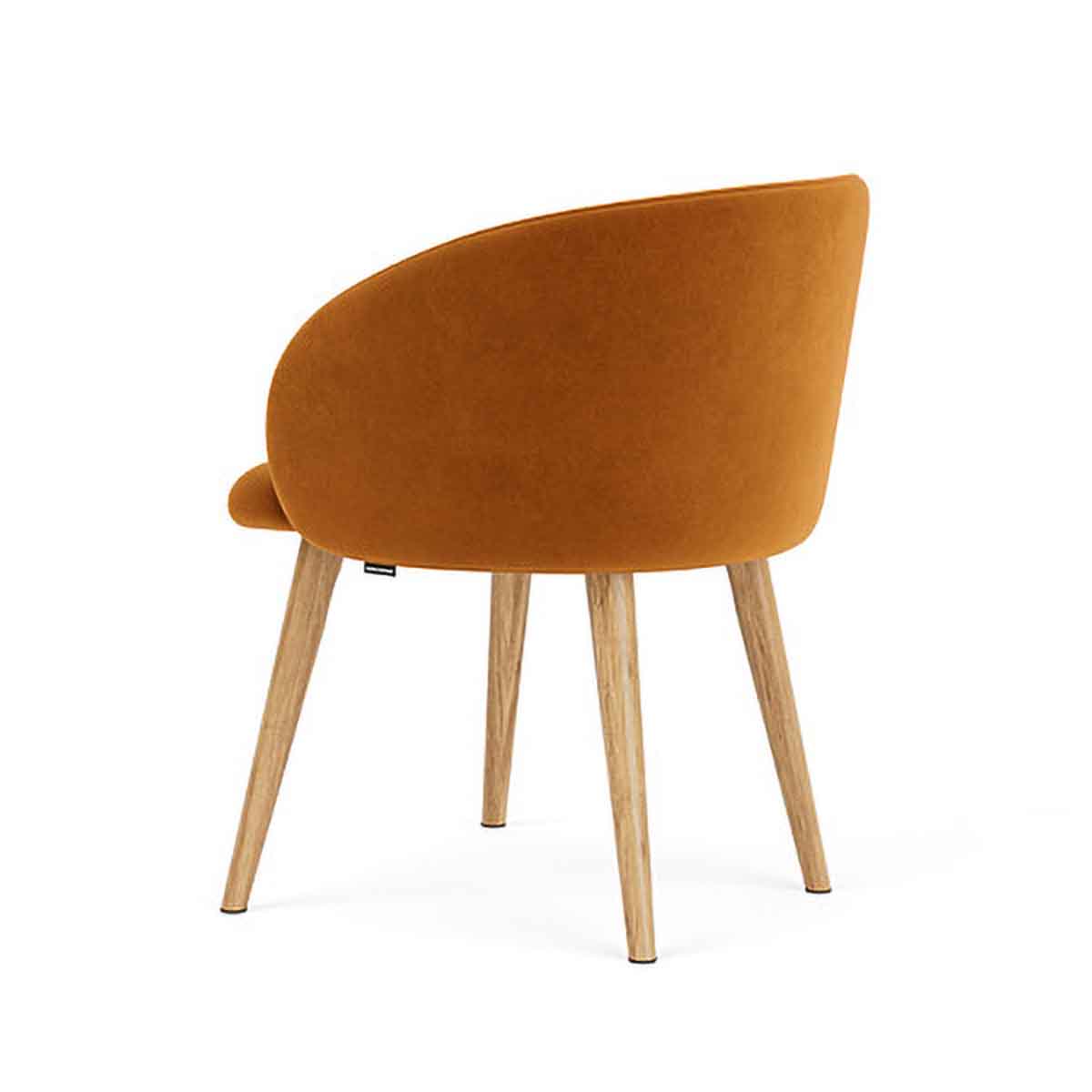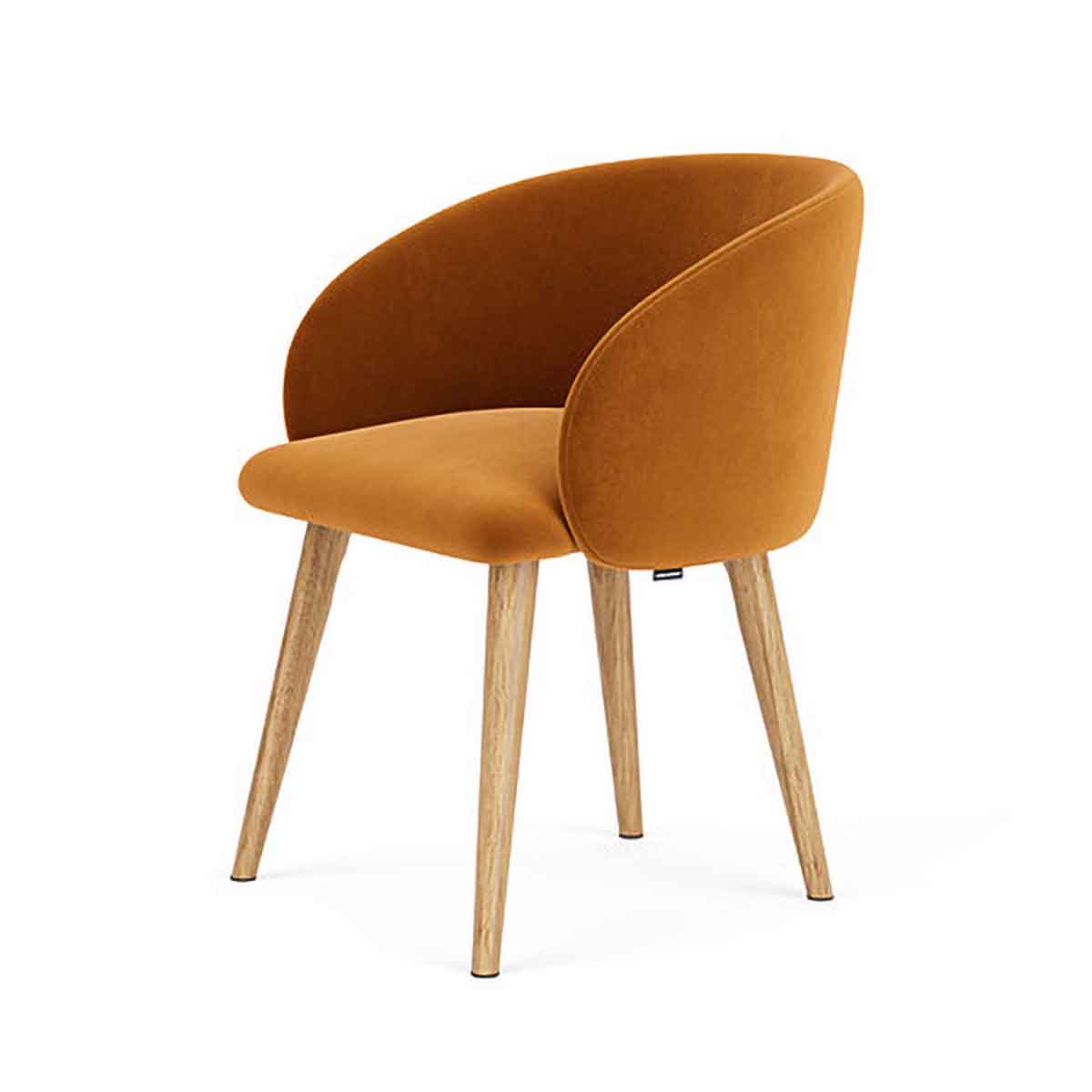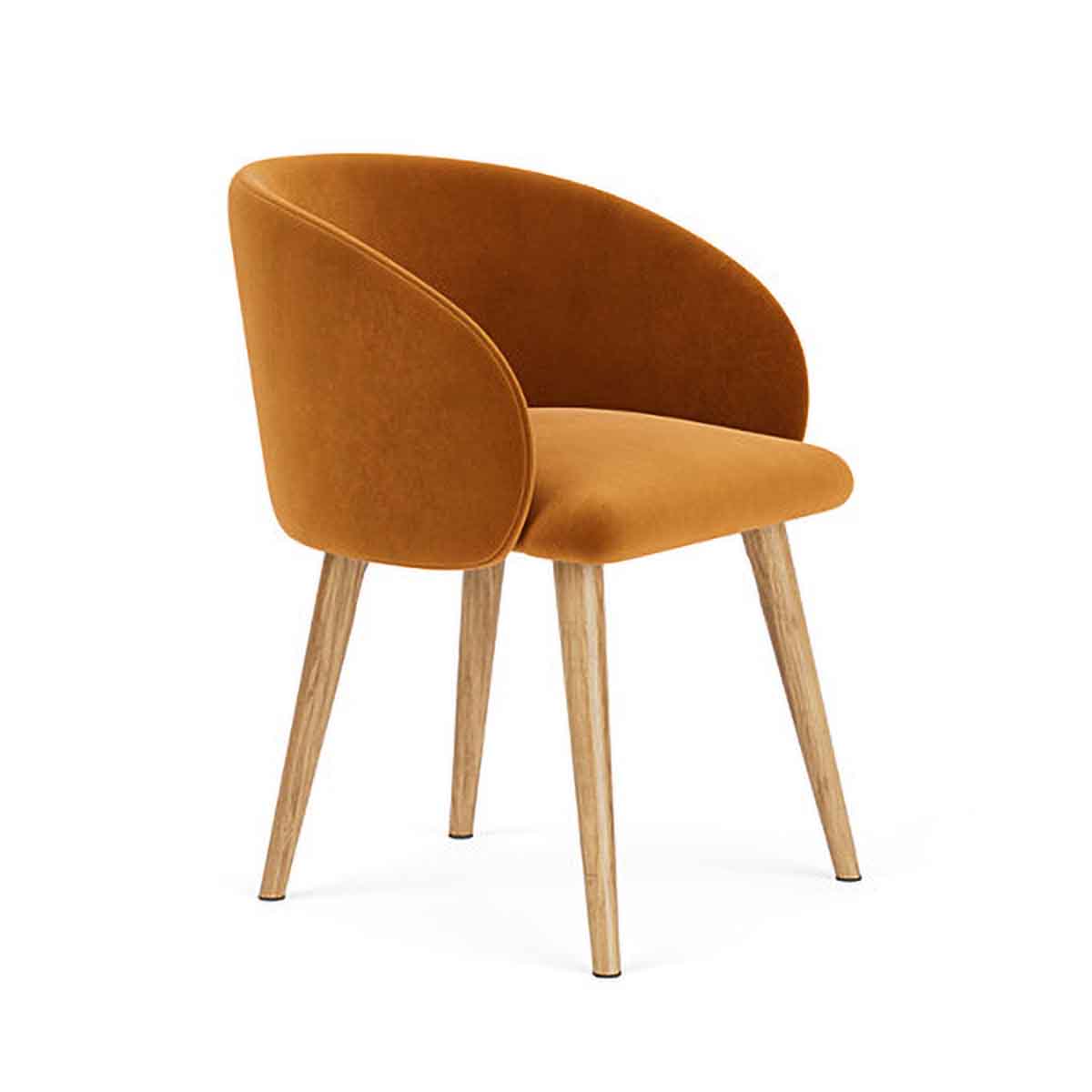 Fabric upholstery, curved backrest, legs come in 2 finishes, upholstery available in various colourways.
