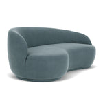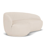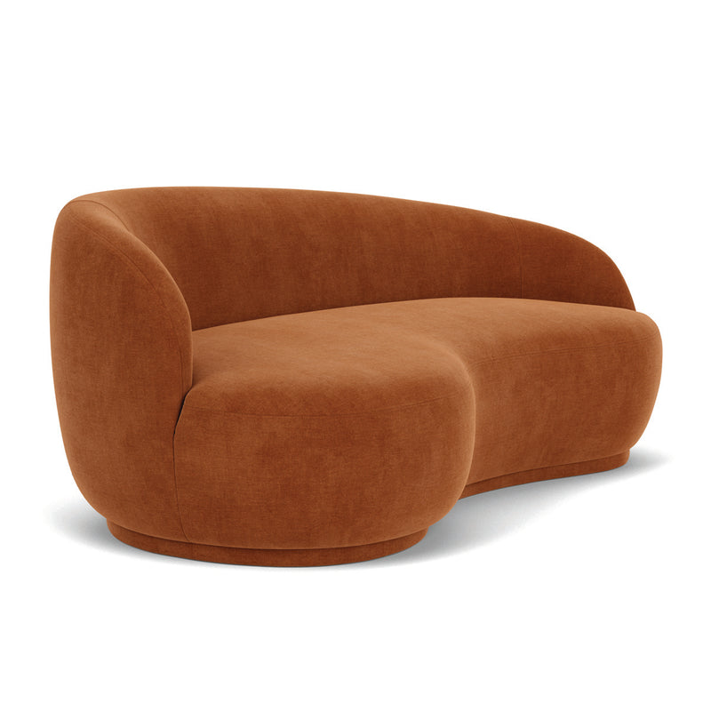 Left facing, 2.5 seater but can seat up to 3, polyester upholstery, available in various colourways, curved shape.