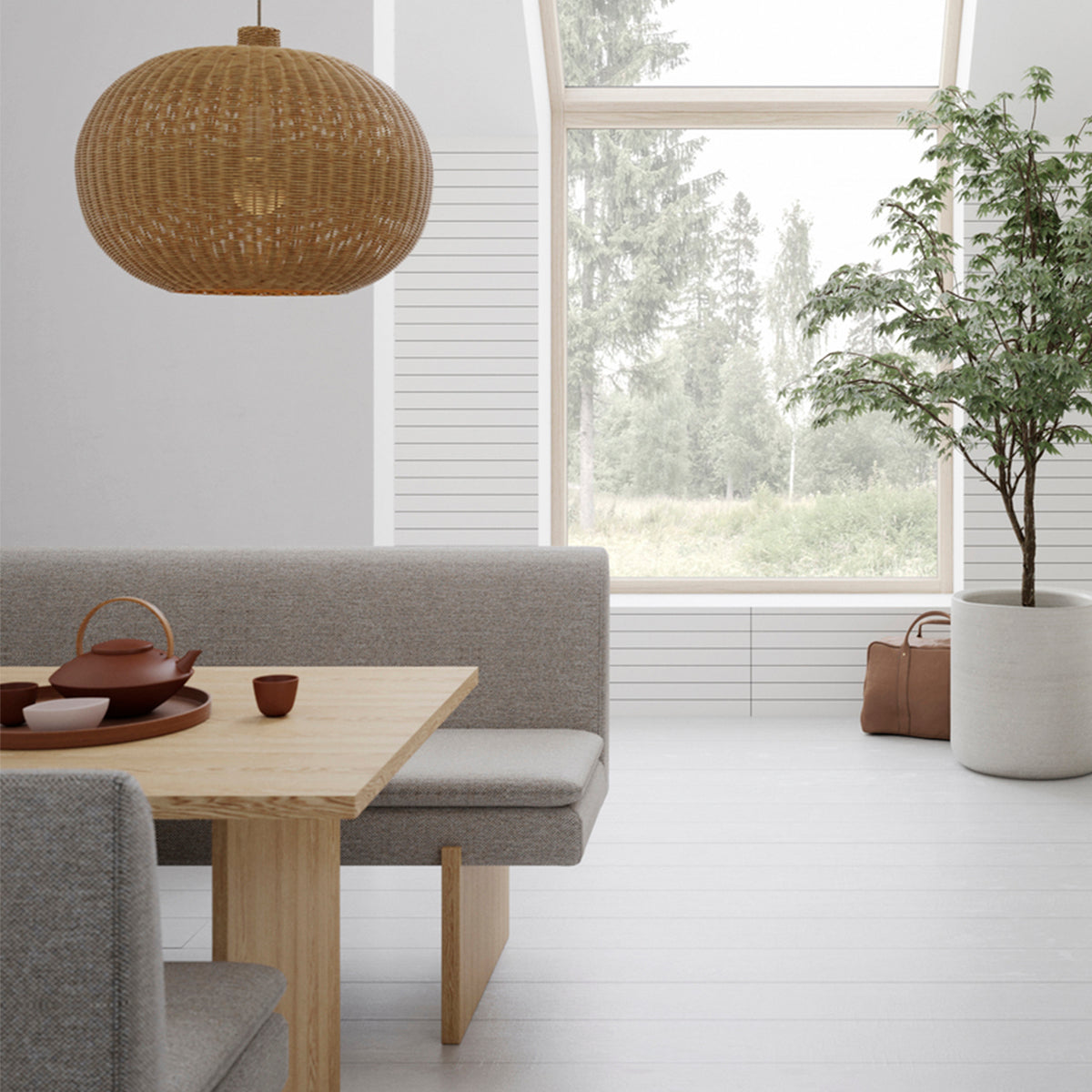 The Umi Fabric Dining Sofa Daybed is a versatile piece with a minimalistic design. It features a wooden frame with a fabric upholstered seat and backrest. This piece helps create a cosy atmosphere around the dining table in the kitchen but is also perfect for hallways. The beautiful form of the bench is inspired by the Japandi trend, a fusion of the classic and simple lines found in Japanese and Scandinavian designs