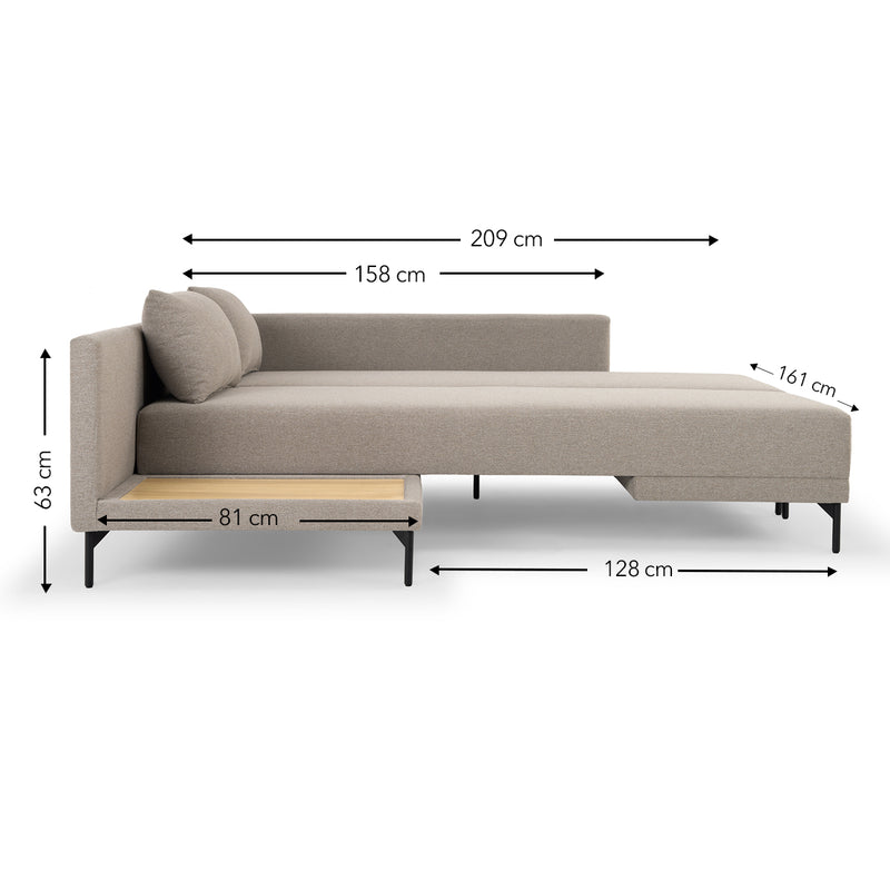 Chaise Depth: 210cm, Unfolded Depth: 160cm, Seat Depth on Chaise, 184cm