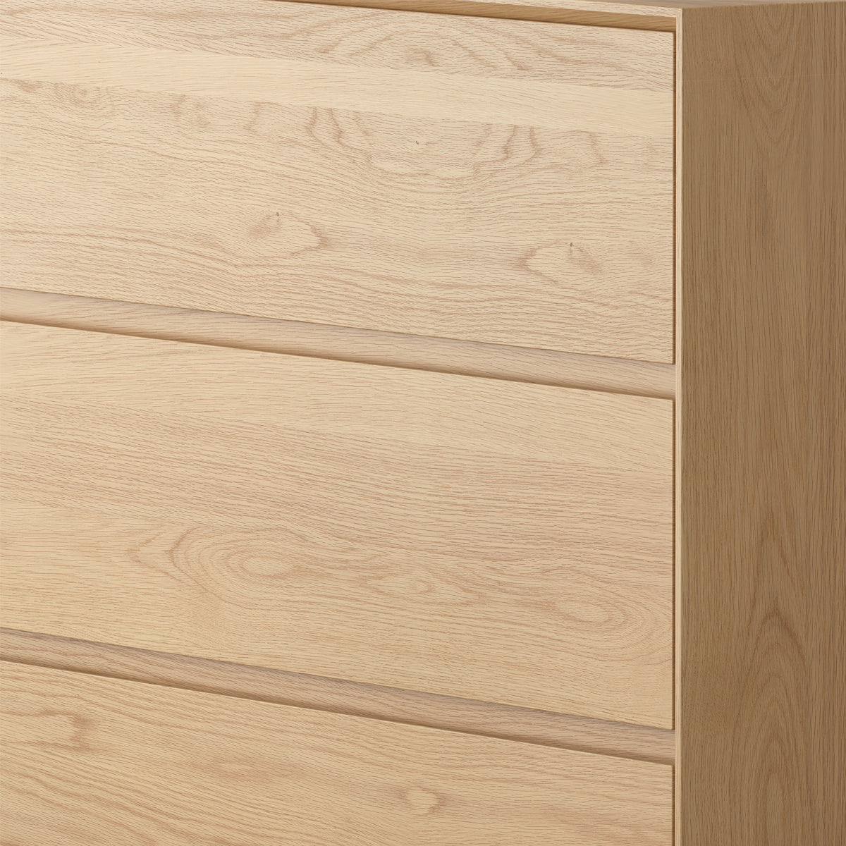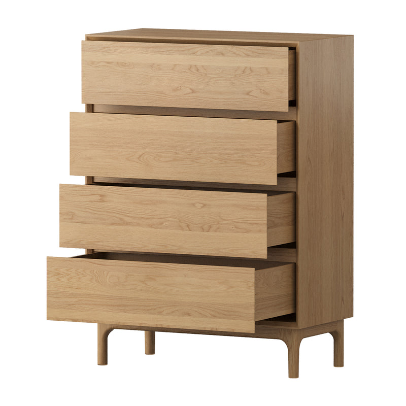 Solid timber frame and American oak veneer, 4 drawers felt lined, soft closing runners.