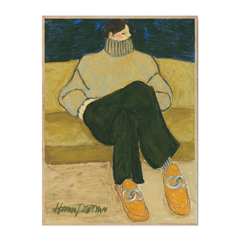 Fashion Diva 02 Art Print captures effortless sophistication with a relaxed yet refined aesthetic. A figure reclines in a cozy turtleneck sweater, paired with tailored trousers and statement orange loafers featuring bold silver accents. The muted tones and expressive strokes evoke a sense of quiet confidence, making this artwork a perfect addition to contemporary spaces. Ideal for those who appreciate art with a touch of understated luxury, this piece blends warmth, texture, and timeless style in a single composition.