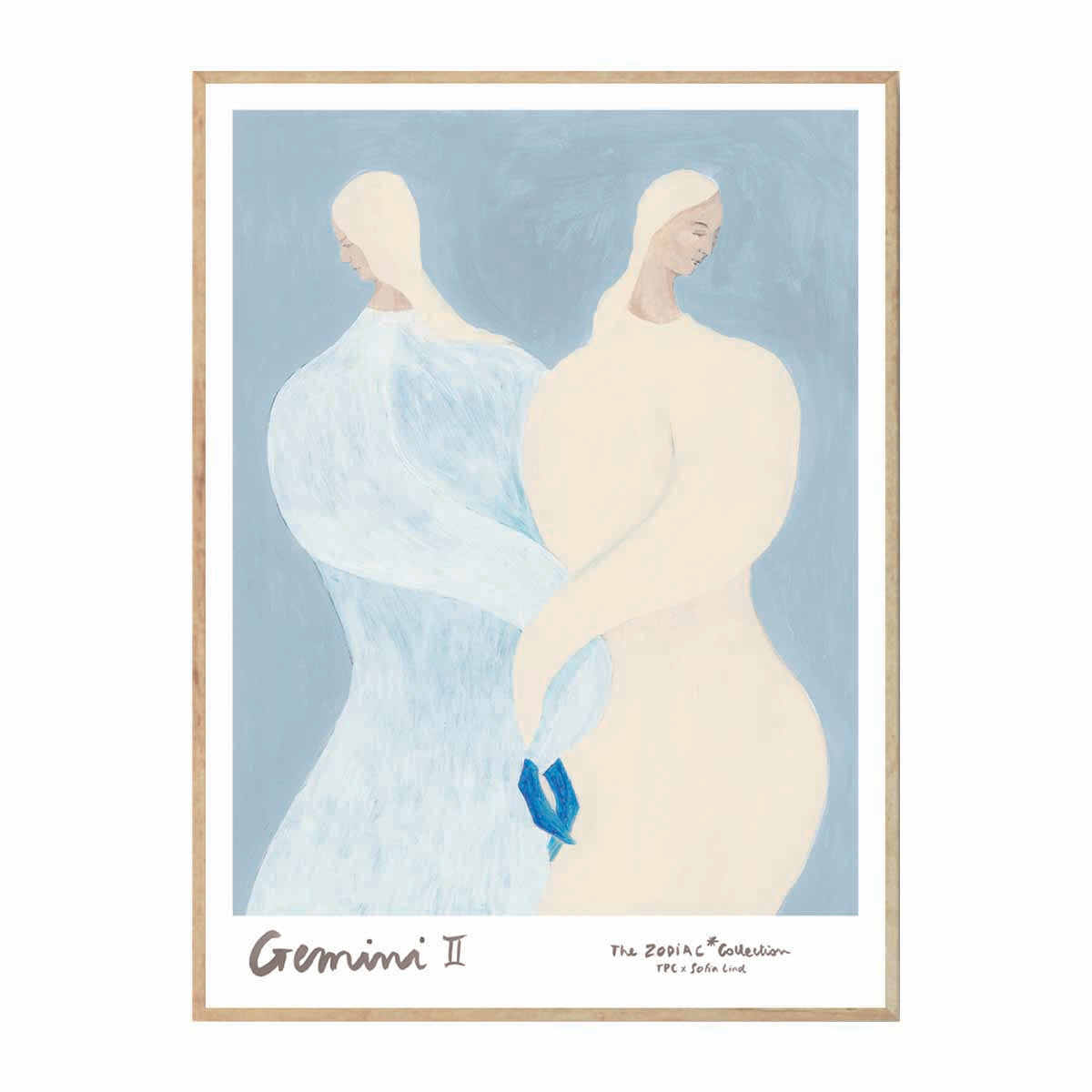 From The Zodiac Collection by bestselling artist Sofia Lind, this work interprets the zodiac as living portraits rather than symbolic archetypes. In Gemini, two figures stand closely intertwined, their mirrored forms suggesting both duality and unity. Playful yet composed, they embody connection held in balance. Made in exclusive collaboration with The Poster Club.