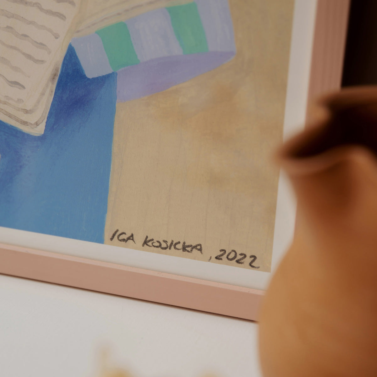 All non-canvas artworks should be framed behind glass. To ensure longevity, avoid exposure to direct sunlight or in settings that are very humid for extended periods of time in order to maintain the artwork's colour. Dust your artworks with a clean, soft cloth occasionally to prevent dust buildup.