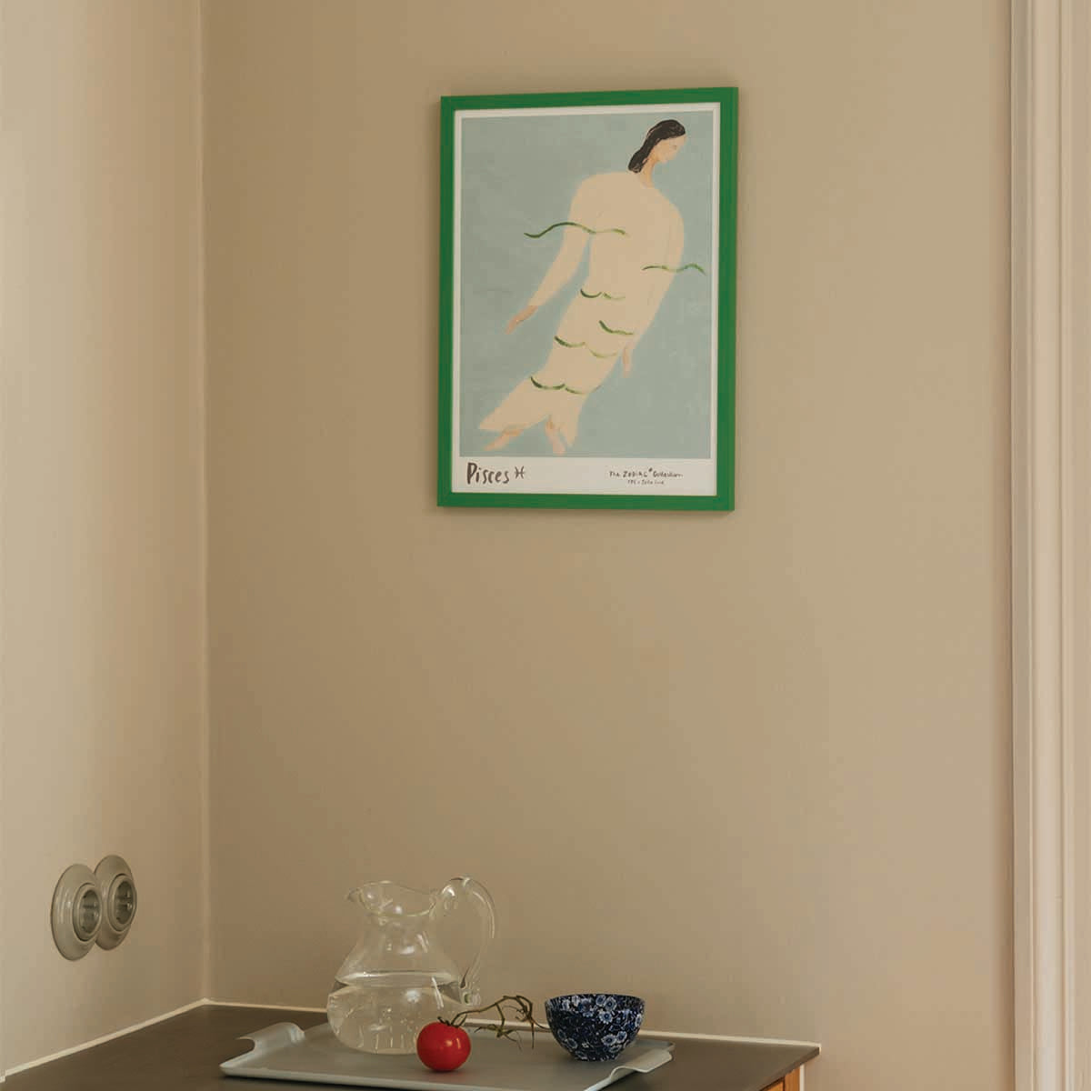 From The Zodiac Collection by bestselling artist Sofia Lind, this work interprets the zodiac as living portraits rather than symbolic archetypes. In Pisces, the figure drifts forward as though carried by waves. Dreamlike yet composed, she embodies intuition and quiet strength. Made in exclusive collaboration with The Poster Club.