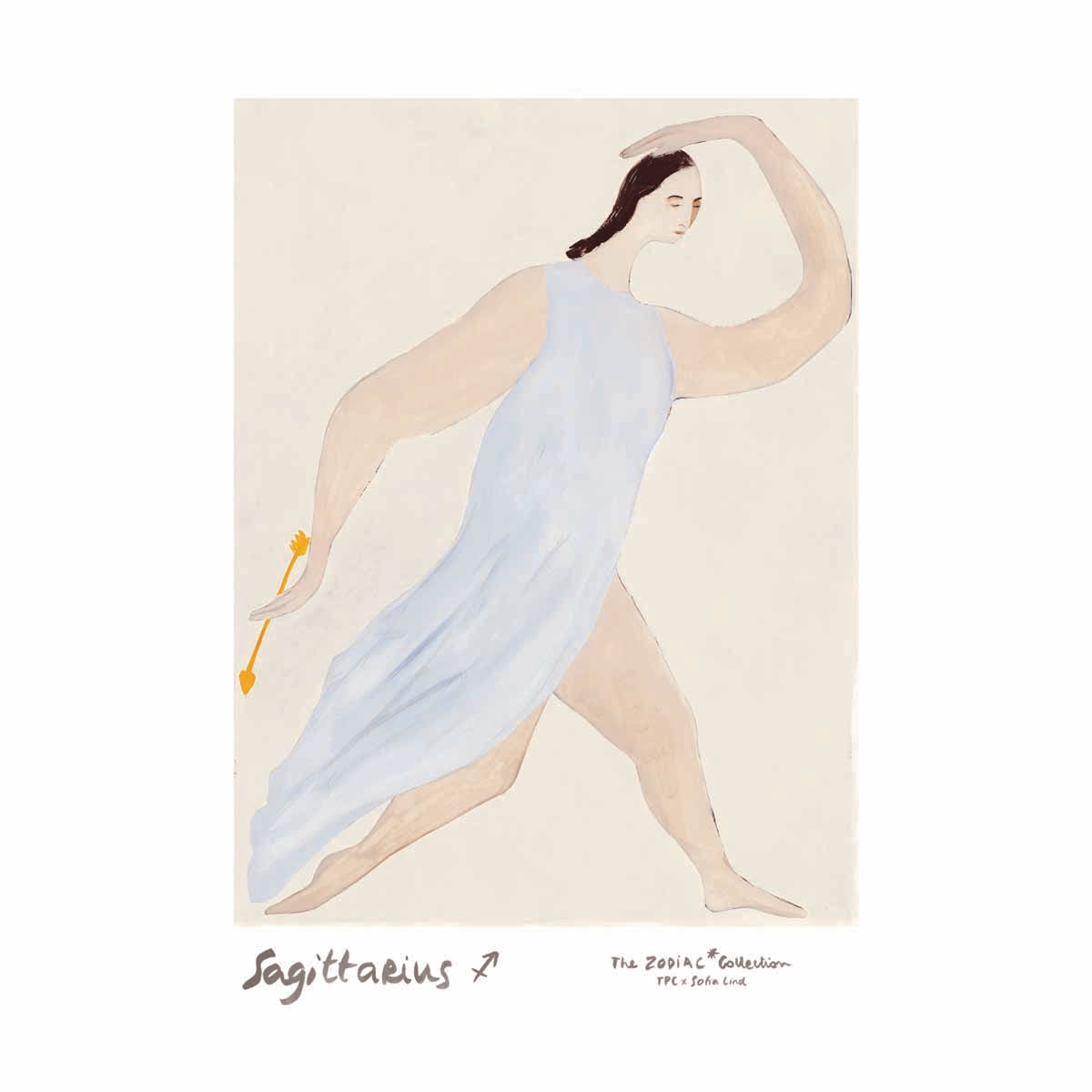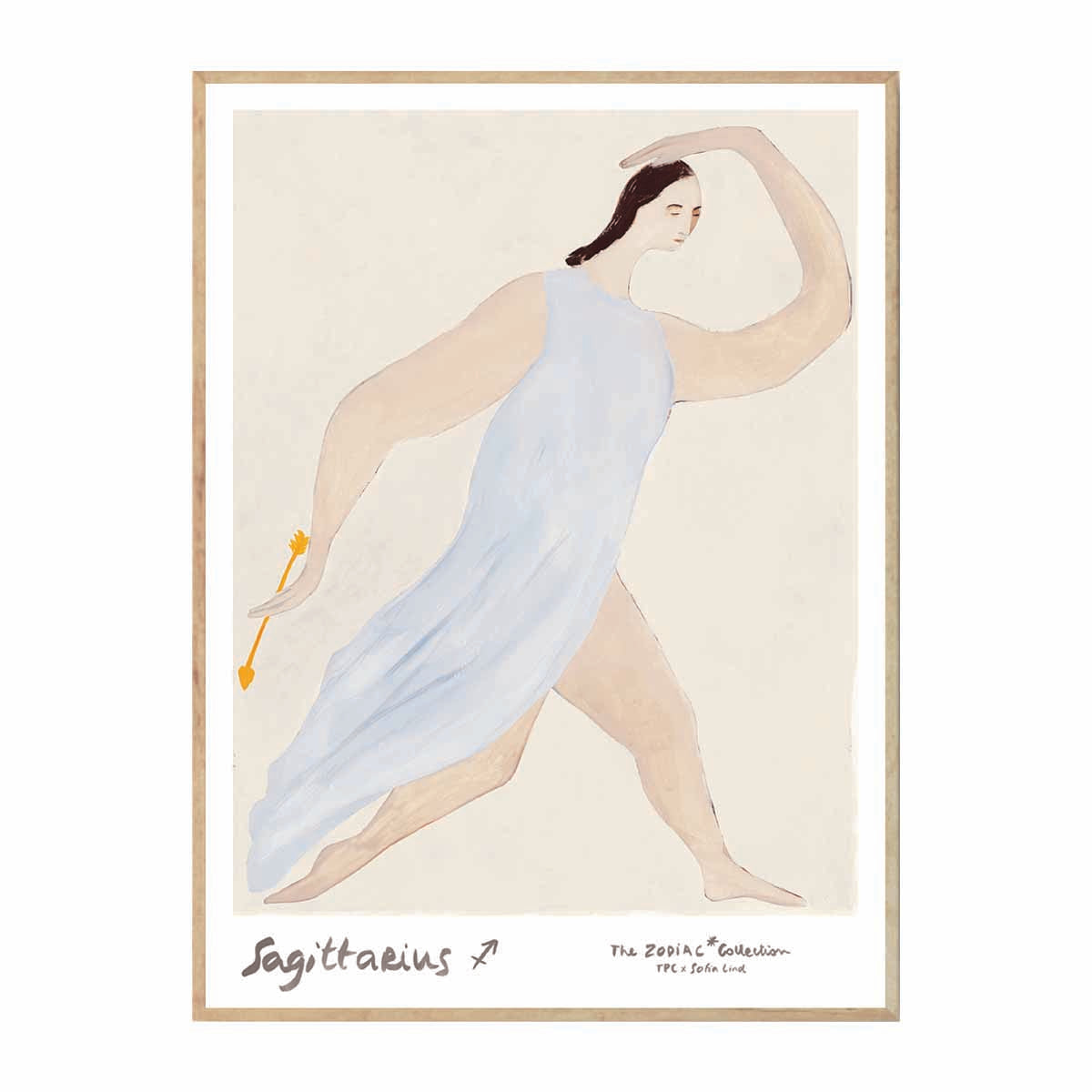 From The Zodiac Collection by bestselling artist Sofia Lind, this work interprets the zodiac as living portraits rather than symbolic archetypes. Sagittarius is portrayed mid-motion, her body angled forward as she grips an arrow. It is a portrait of quest and determination, a figure always reaching further. Made in exclusive collaboration with The Poster Club.