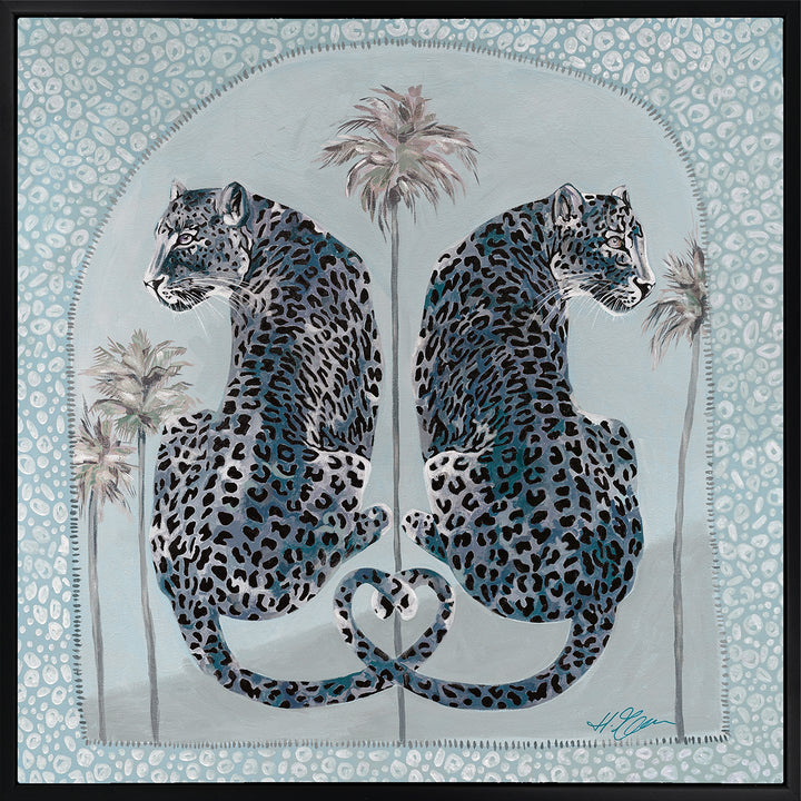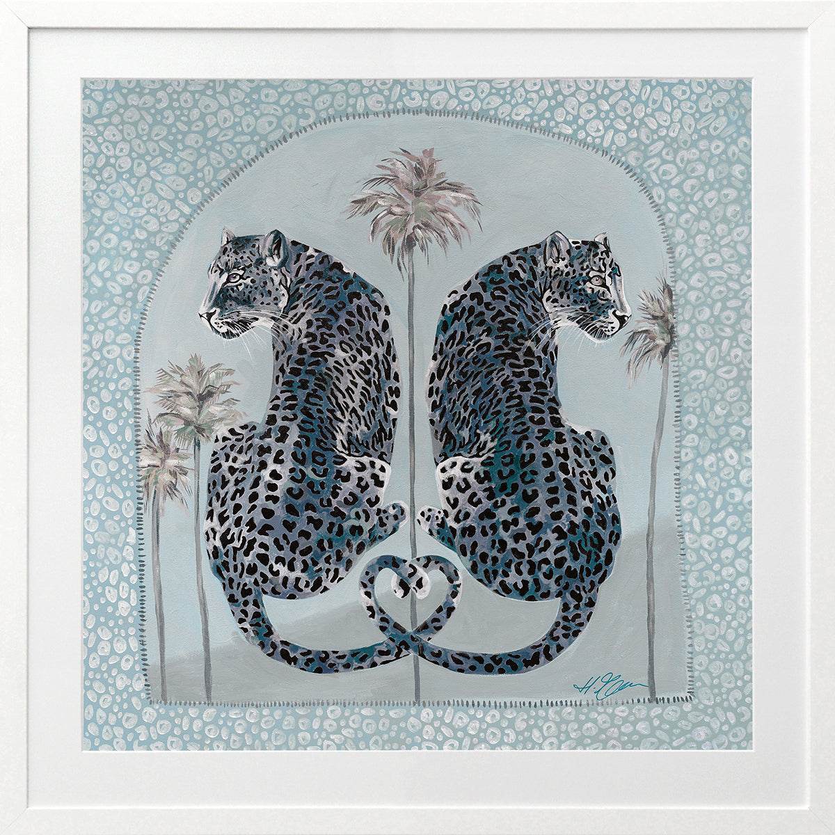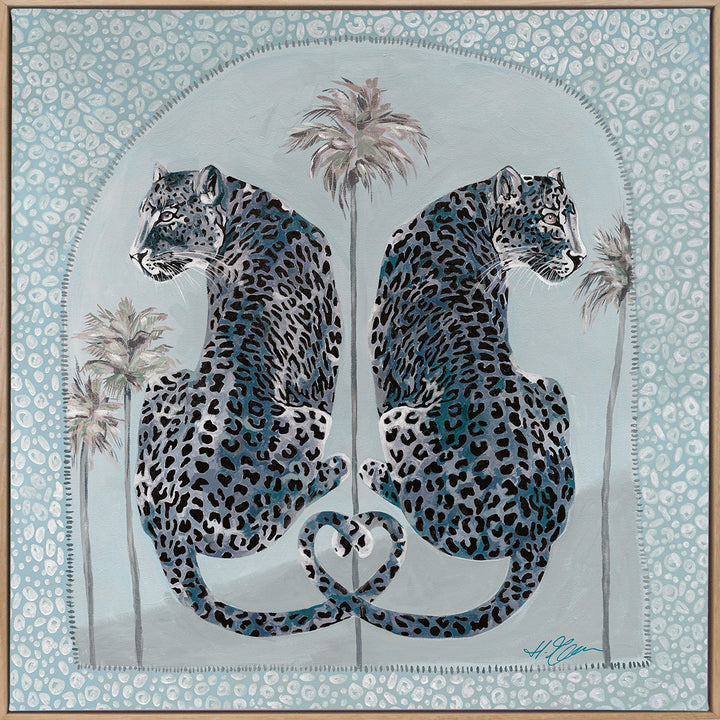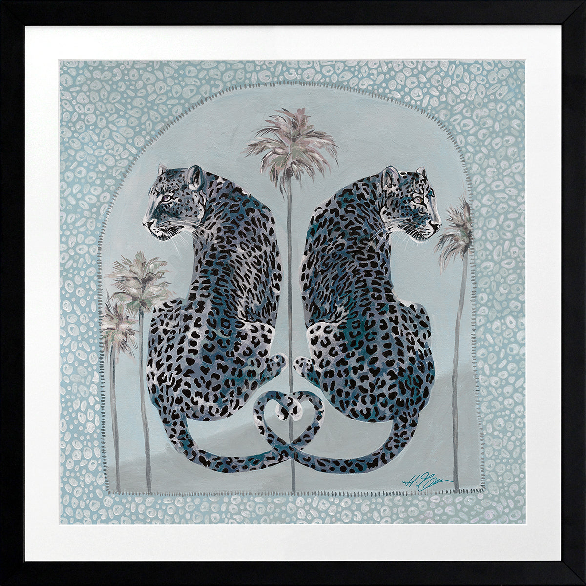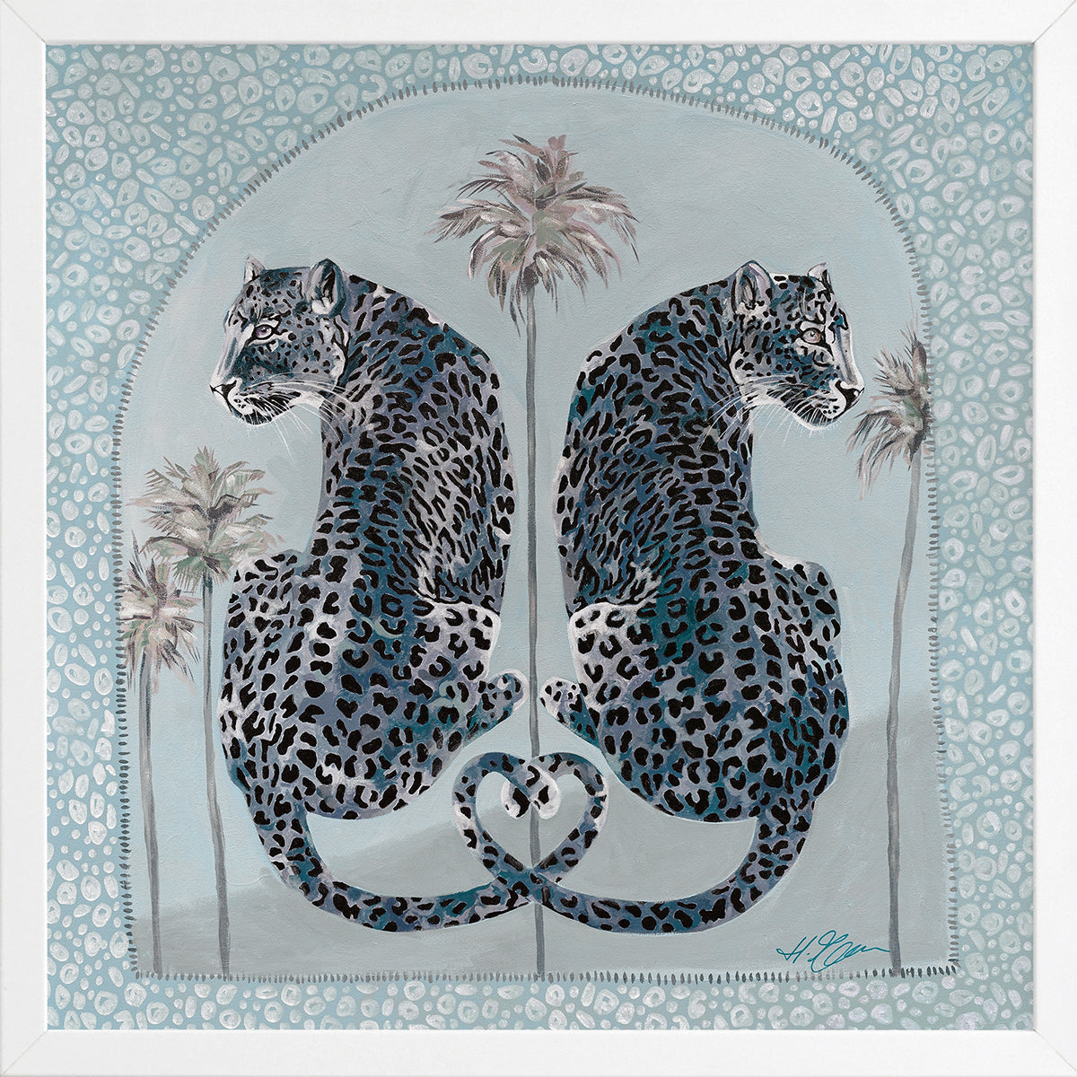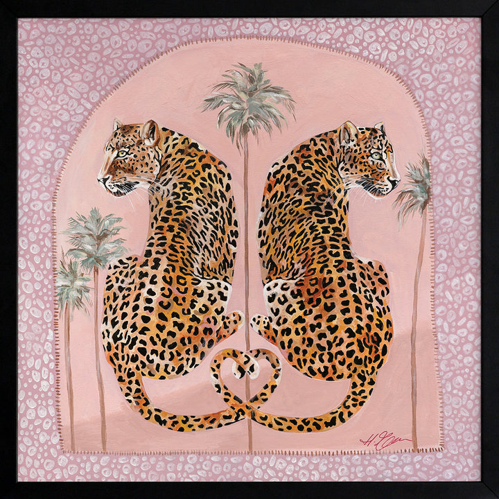 Fun and inviting, this boho-inspired Synchronicity Art Print features two leopards side-by-side, enjoying a moment among the palm trees on a warm summers night. A bright palette of pink tones, green, orange, and dark yellow complements funky shapes and patterns throughout the work. Urban Roads range of artworks are perfect to uplift your home, fill that empty wall, or add an extra layer of texture and comfort.